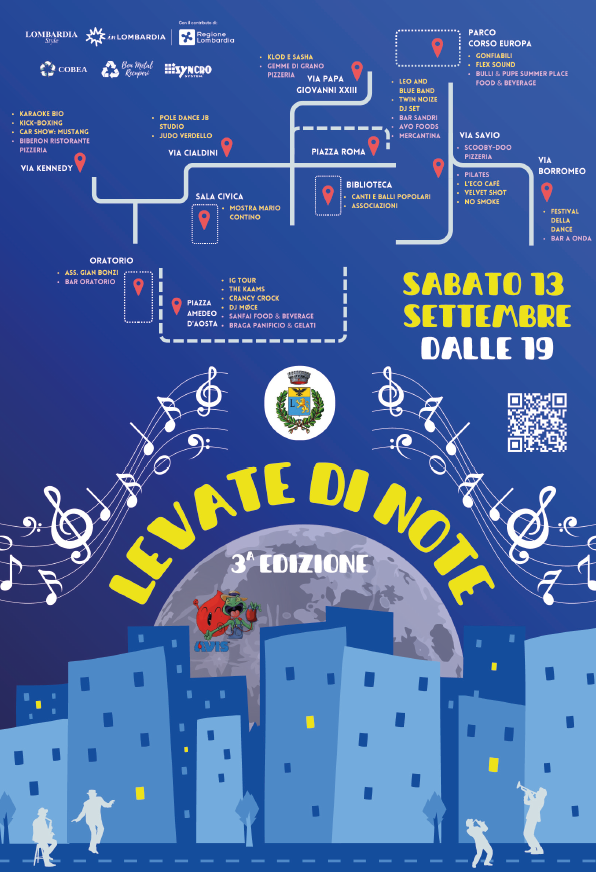 Sabato 13 settembre, a partire dalle 19, Levate si trasforma in un teatro a cielo aperto per la terza edizione della Notte Bianca «Levate di Note». Un appuntamento ormai atteso che accende le strade e le piazze del paese con musica, spettacoli, buon cibo e tanta voglia di stare insieme. L’intero centro cittadino sarà invaso da suoni, luci e sorrisi: da piazza Roma alla biblioteca, dal Parco di Corso Europa fino all’oratorio, ogni angolo di Levate ospiterà esibizioni, attività e intrattenimento per tutte le età. Ci saranno performance musicali, balli popolari, mostre d’arte (in Sala Civica ci saranno le opere di Mario Contino), esibizioni di pole dance e kick-boxing, dj set e persino un «Festival della dance».