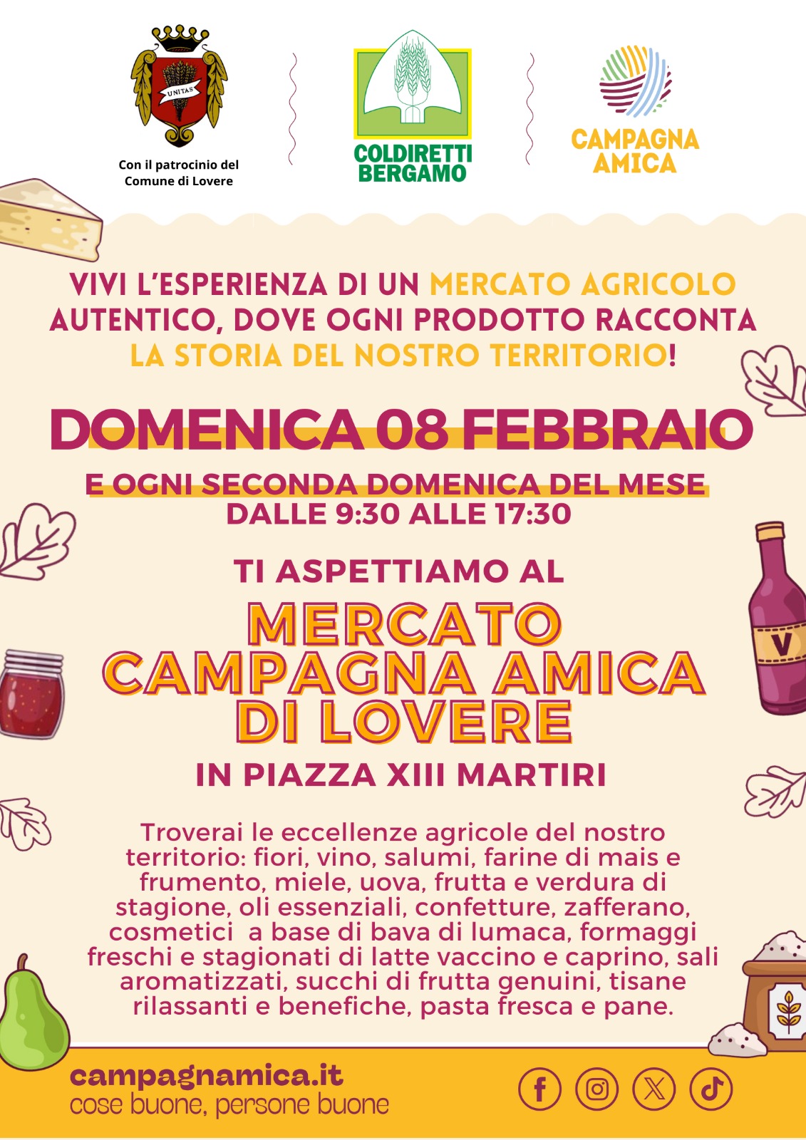 A Lovere torna il tradizionale mercato di Campagna Amica, dove si potranno trovare e acquistare ortaggi e frutta di stagione, formaggi, trasformati e altre eccellenze a km zero direttamente dai produttori agricoli del territorio.