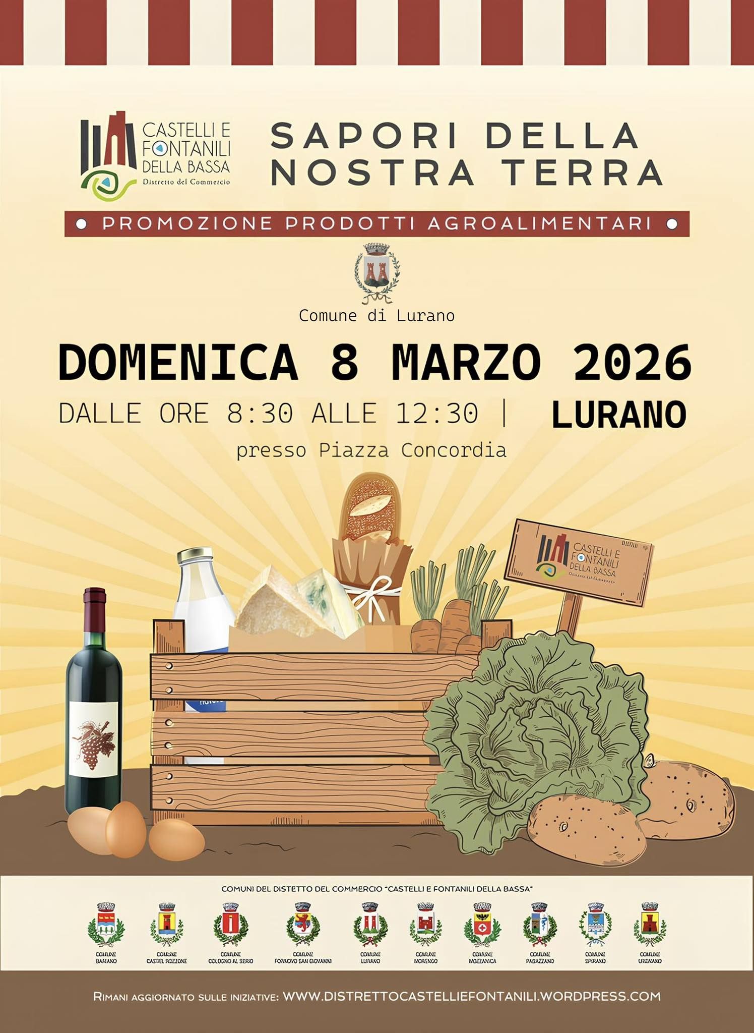 Torna a Lurano il mercato a filiera corta, con prodotti agricoli freschi e a Km zero, organizzato da Distretto del Commercio Castelli e Fontanili della Bassa.
