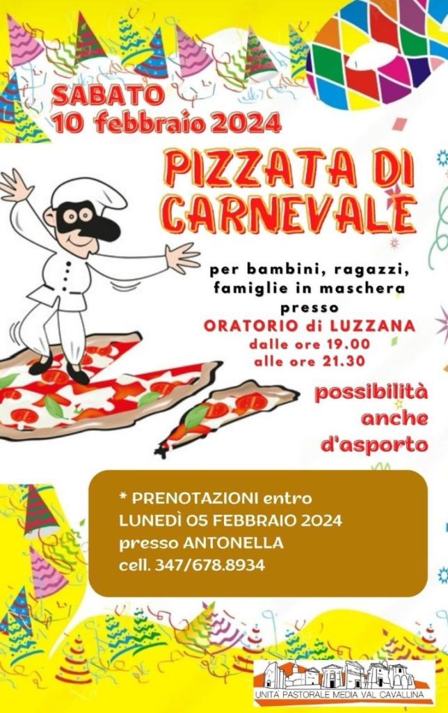 Giovani ragazzi per questo evento organizzano una pizzata di Carnevale presso l’Oratorio parrocchiale di Luzzana a partire dalle 19.
