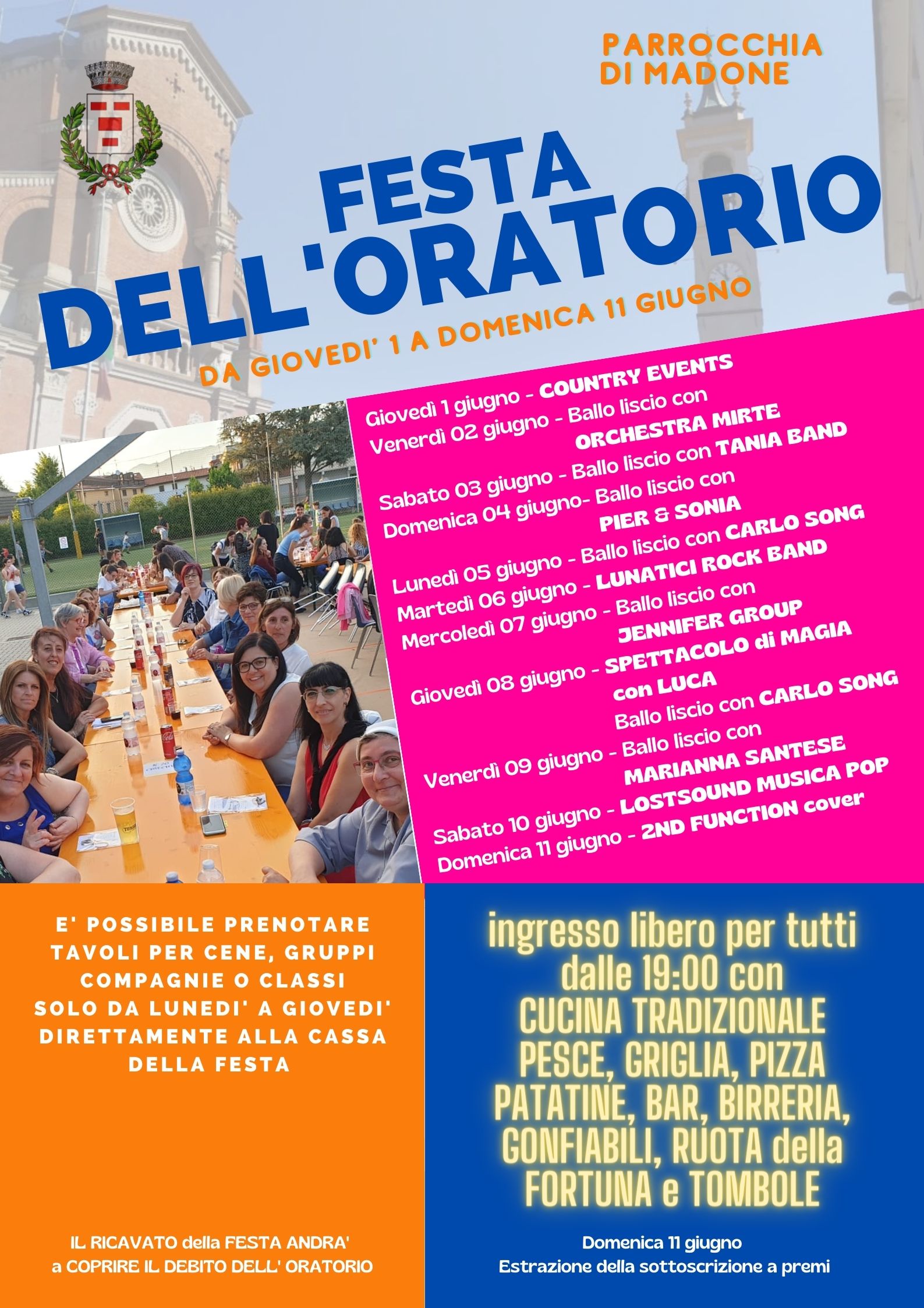 L'oratorio di Madone si anima per il weekend con una festa per tutti quanti! Ci saranno i gonfiabili per i piรน piccoli, tombole e giochi, balli in compagnia, spettacoli di magia e tanto altro.