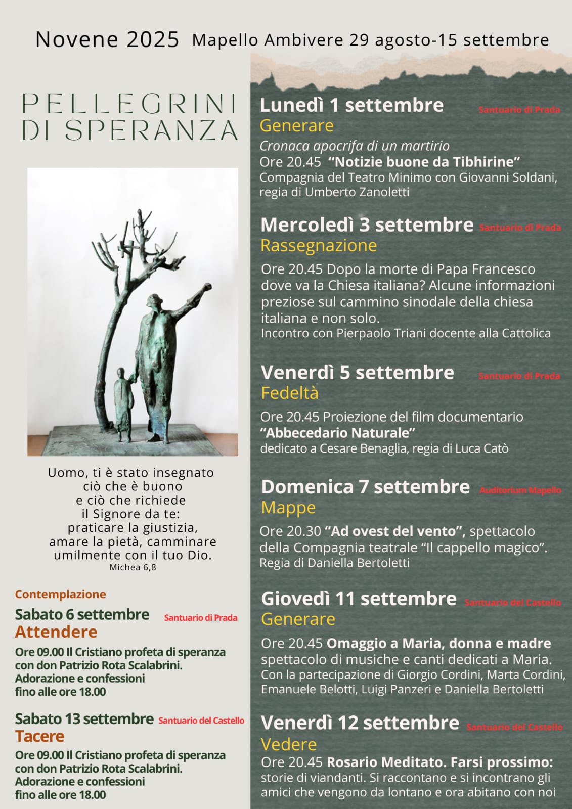Con l'arrivo di settembre, le parrocchie di Mapello e Ambivere si preparano a ospitare un fitto programma di eventi per le Novene dedicate alla Madonna di Prada e alla Madonna del Castello.