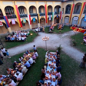 Una "vera cena medievale" alla corte di Bartolomeo Colleoni, organizzata rievocando l'atmosfera del 1400 solo con torce, bracieri e candele, e con l'intrattenimento di giullari / cantastorie.