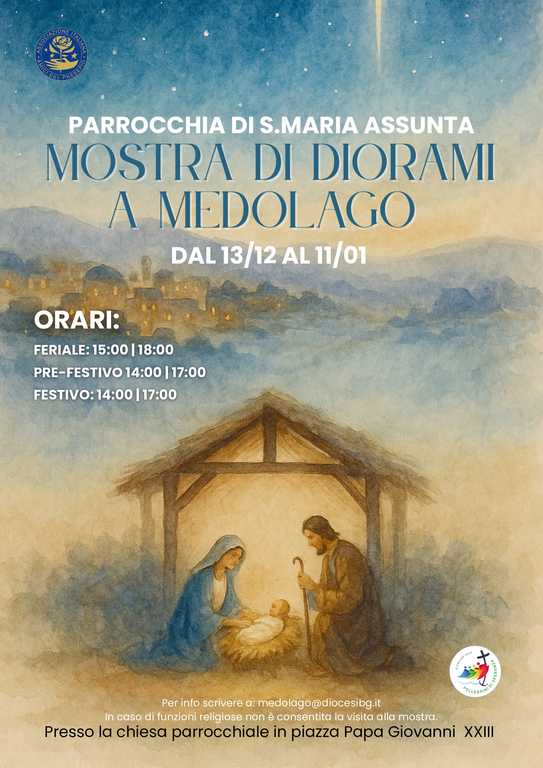 La Parrocchia di Santa Maria Assunta organizza a Medolago una Mostra di Diorami che si terrà dal 13 Dicembre all'11 Gennaio.