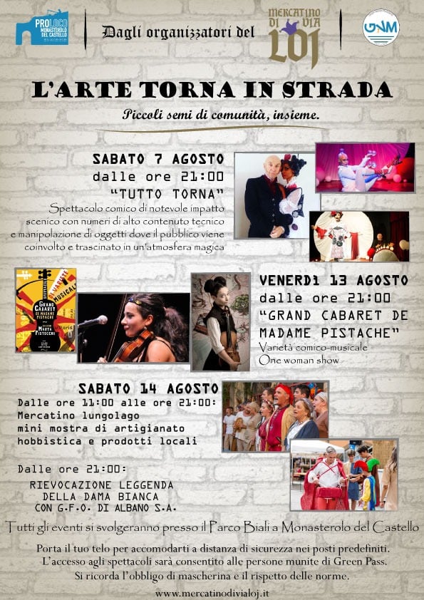 Il 14 agosto dalle 11 alle 21 si svolgerà il tradizionale Mercatino di Via Loj presso il Parco Biali (zona lungolago) con una mini mostra di artigianato hobbistica e prodotti locali.
