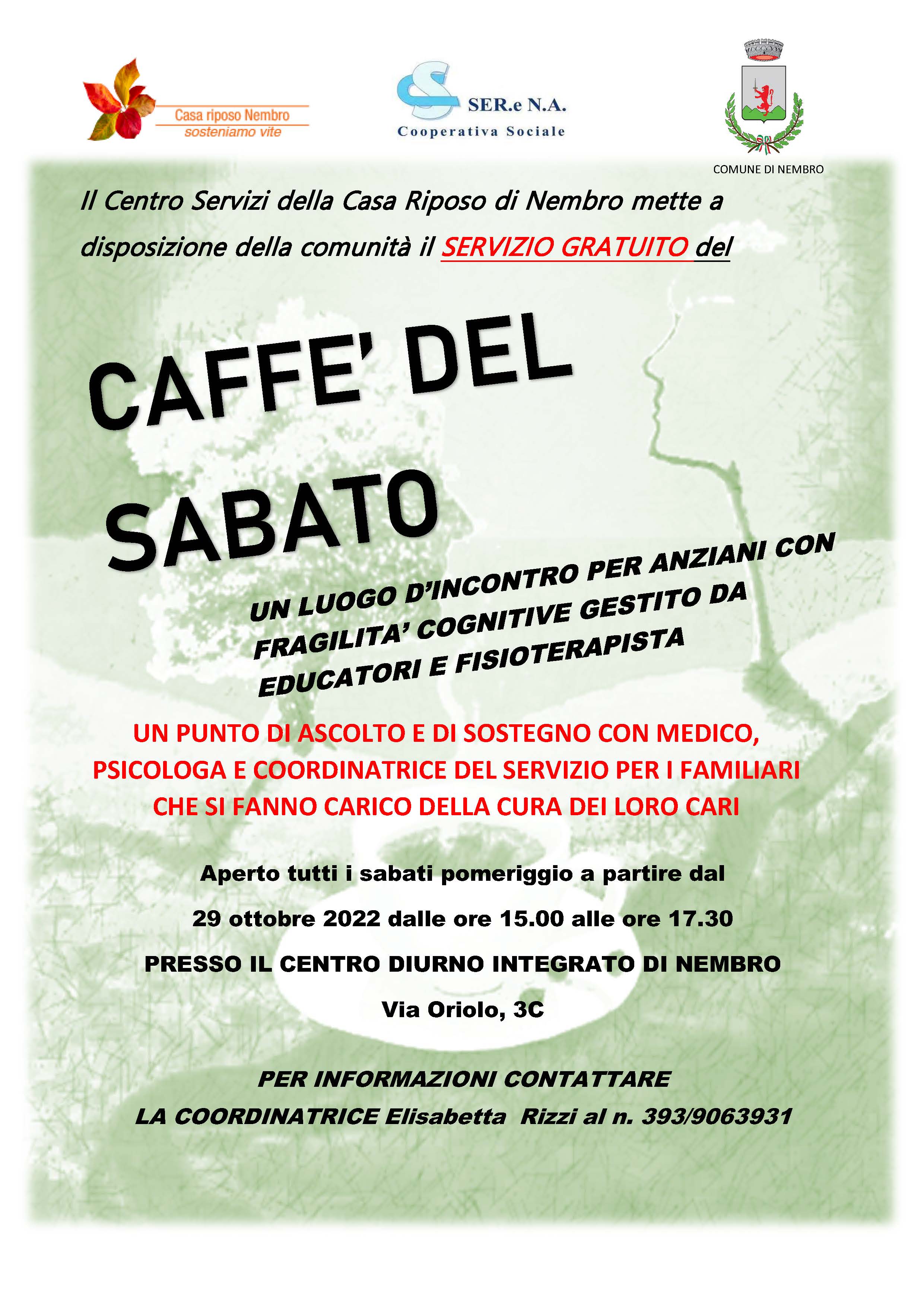 Il Centro Servizi della Casa Riposo di Nembro mette a disposizione della comunità il servizio gratuito del Caffè del Sabato gestito da educatori e un fisioterapista.