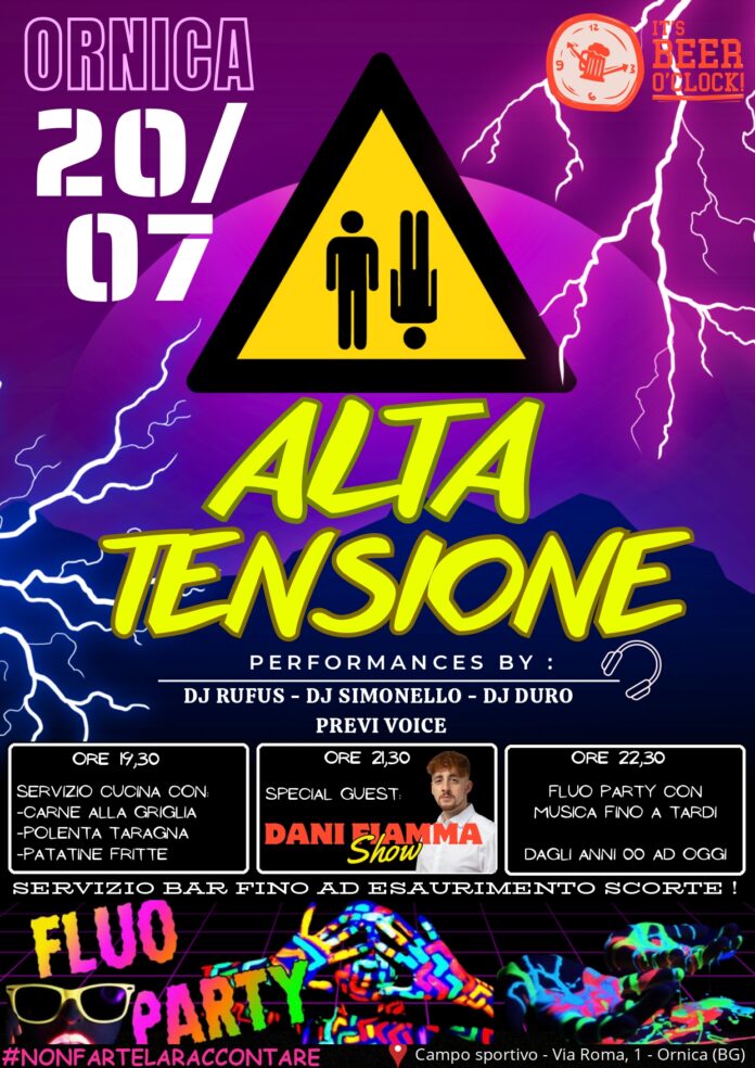 Presso il campo sportivo di Ornica è in programma "Alta tensione", una serata di musica e divertimento.