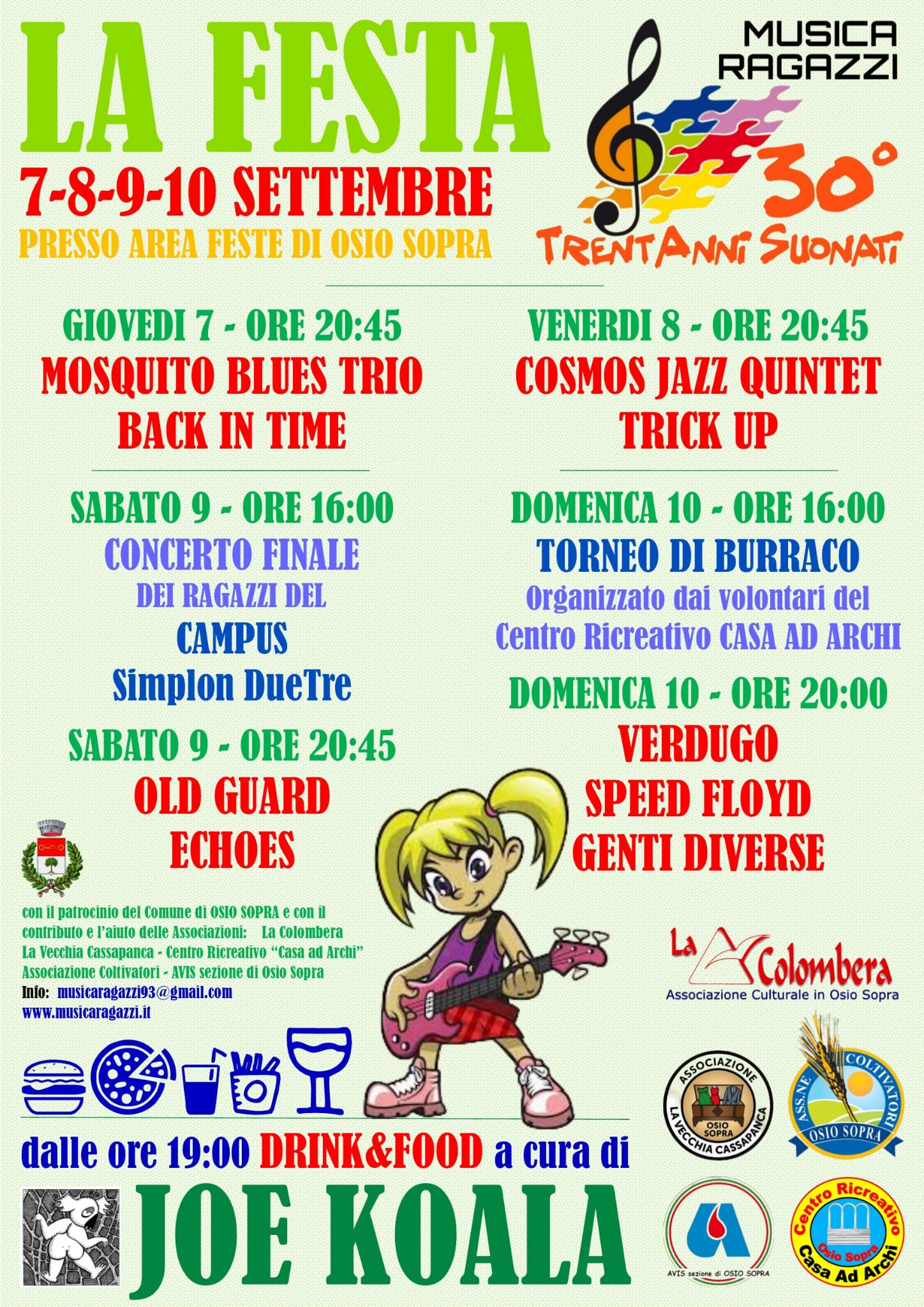Festa del Trentennale di Musica Ragazzi dal 7 al 10 settembre, presso Area Feste di Osio sopra.