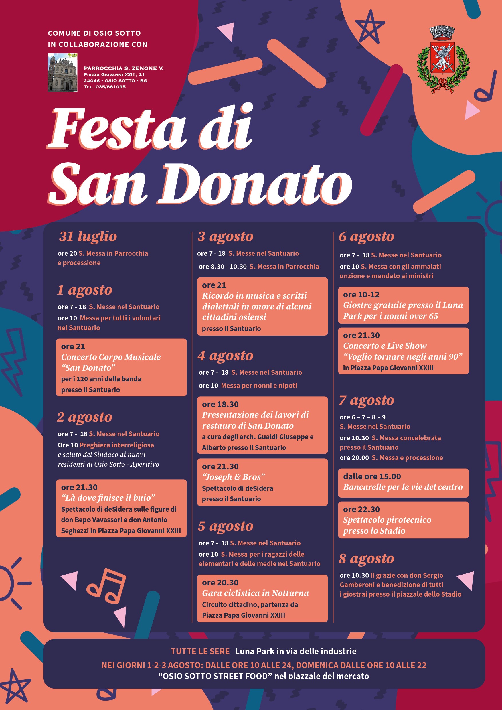 In occasione della Festa di San Donato, il Comune di Osio Sotto presenta un ricco calendario di eventi per celebrare il Patrono, con iniziative che animeranno il paese fino al 7 agosto.