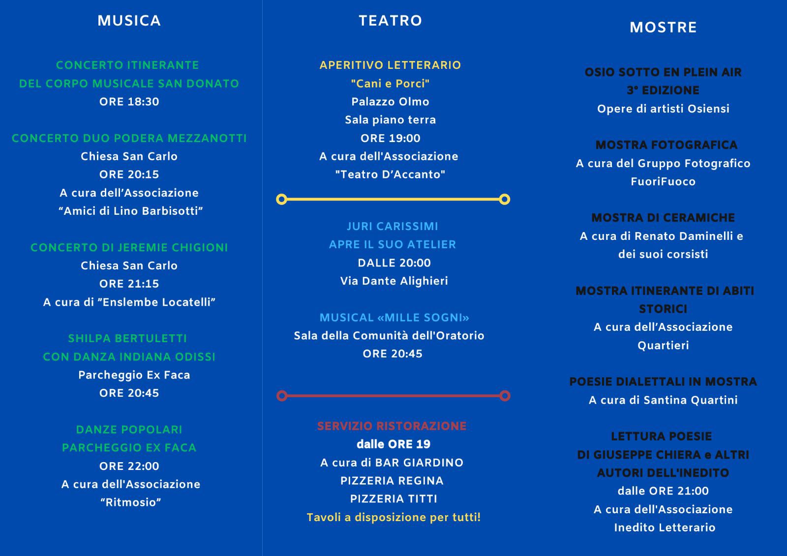 - Dalle 20: nel giardino della Chiesa San Carlo, laboratorio manga per bambini e ragazzi (a cura della Cartoleria Campus)