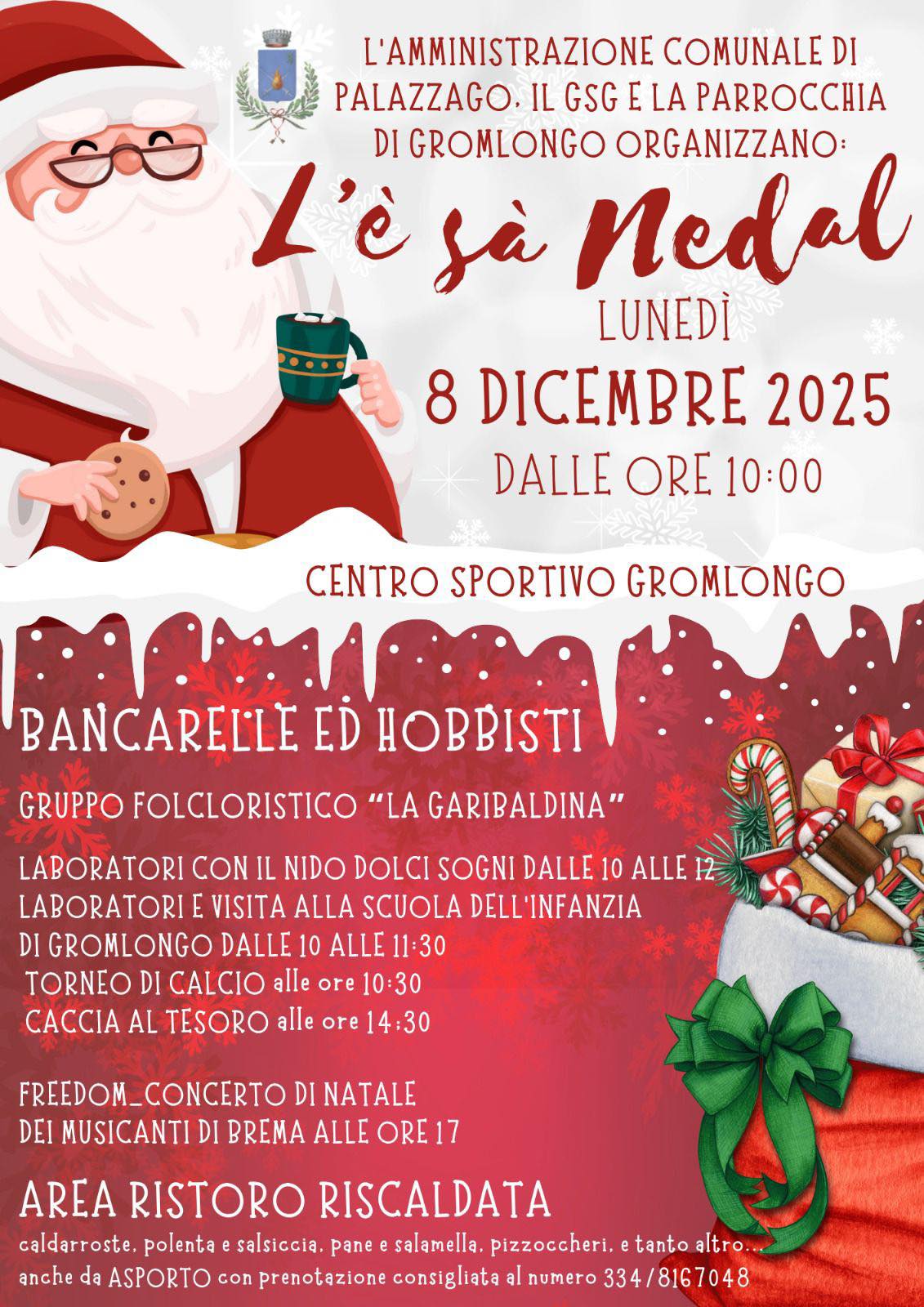 In occasione delle feste, il Comune di Palazzago organizza una giornata per vivere l'atmosfera natalizia. Bancarelle, laboratori e concerti per celebrare assieme l'arrivo di Babbo Natale.