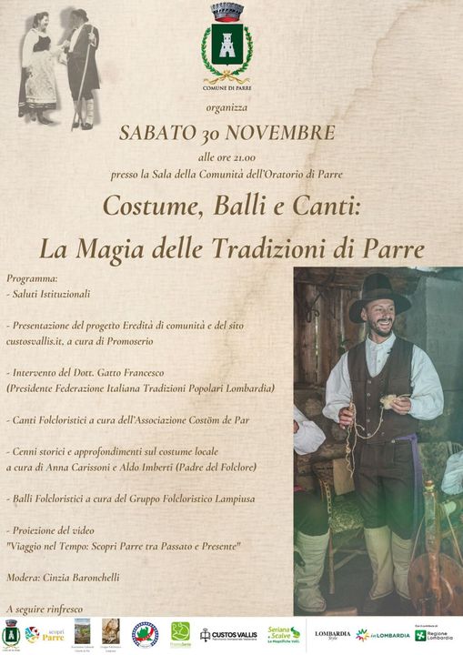 La cultura popolare rappresenta una parte fondamentale dell’identità di ogni comunità, un patrimonio che si tramanda di generazione in generazione, alimentato da racconti, leggende, usanze e ritualità che scandiscono la vita quotidiana. In questo contesto, l'incontro di sabato si propone come un momento di riflessione e riscoperta di ciò che ha definito la vita sociale, familiare e comunitaria di Parre, una piccola ma ricca realtà montana.