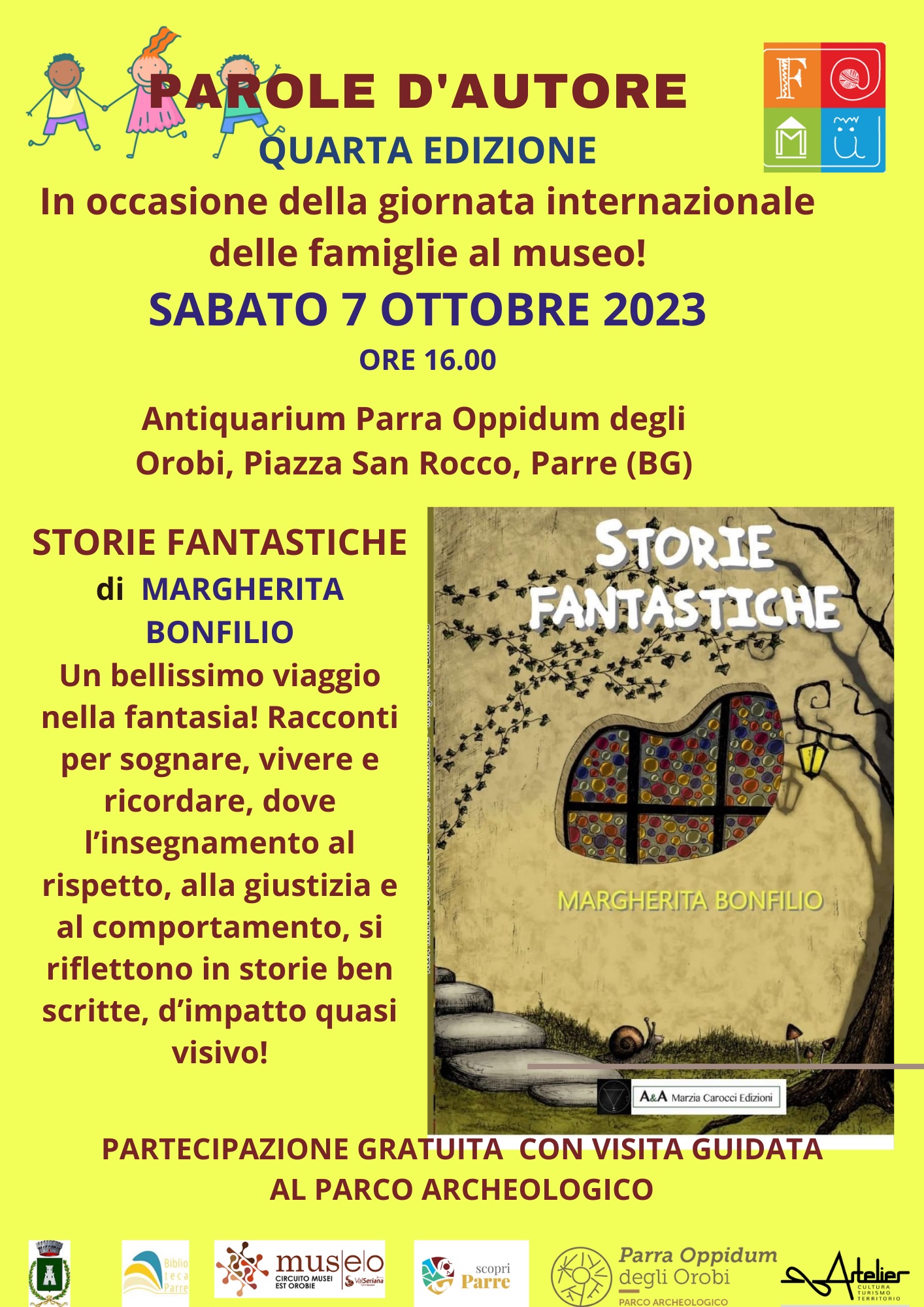 In occasione della giornata internazionale delle famiglie al museo, si organizza la quarta edizione di Parole D'autore, sabato 7 ottobre alle ore 16:00 presso l'Antiquarium Parra Oppidum degli Orobi a Parre.