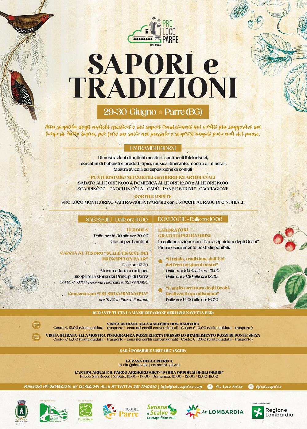 La Pro Loco Parre organizza Sapori e Tradizioni! Alla scoperta di antichi mestieri e sapori tradizionali i nei cortili più caratteristici del borgo di Parre Sopra, per fare un salto nel passato e curiosare tra gli angoli poco noti del paese.