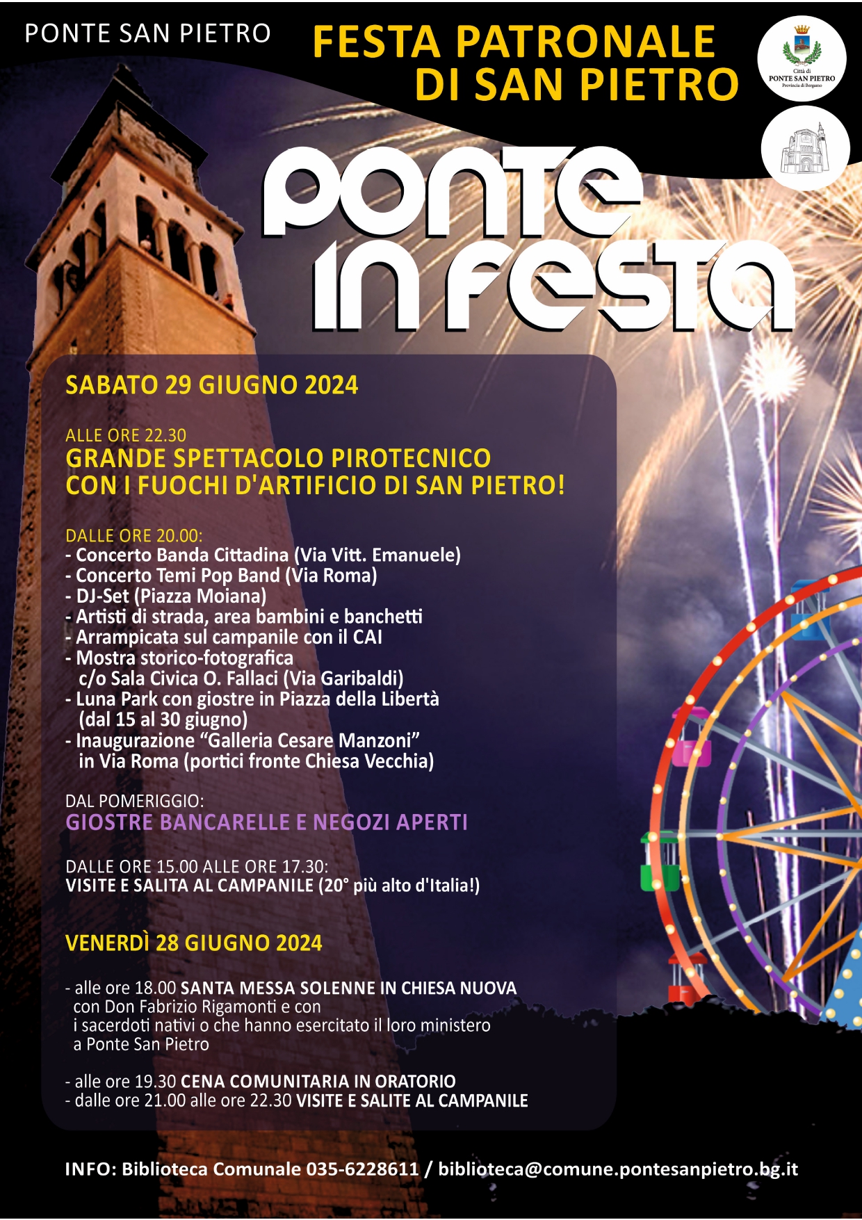 In occasione della Festa Patronale, a Ponte San Pietro ci saranno due giornate ricche di eventi! Giostre, cene, artisti di strada, concerti e molto altro!