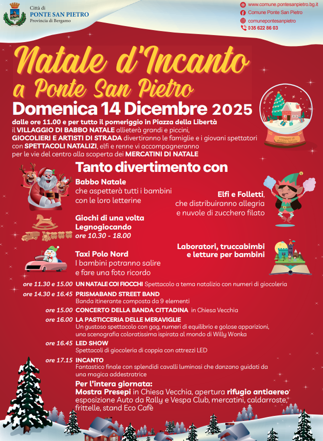 Un evento imperdibile vi aspetta Domenica 14 Dicembre 2025, a partire dalle 11:00 e per tutto il pomeriggio, tra Piazza della Libertà e le vie del centro di Ponte San Pietro.
