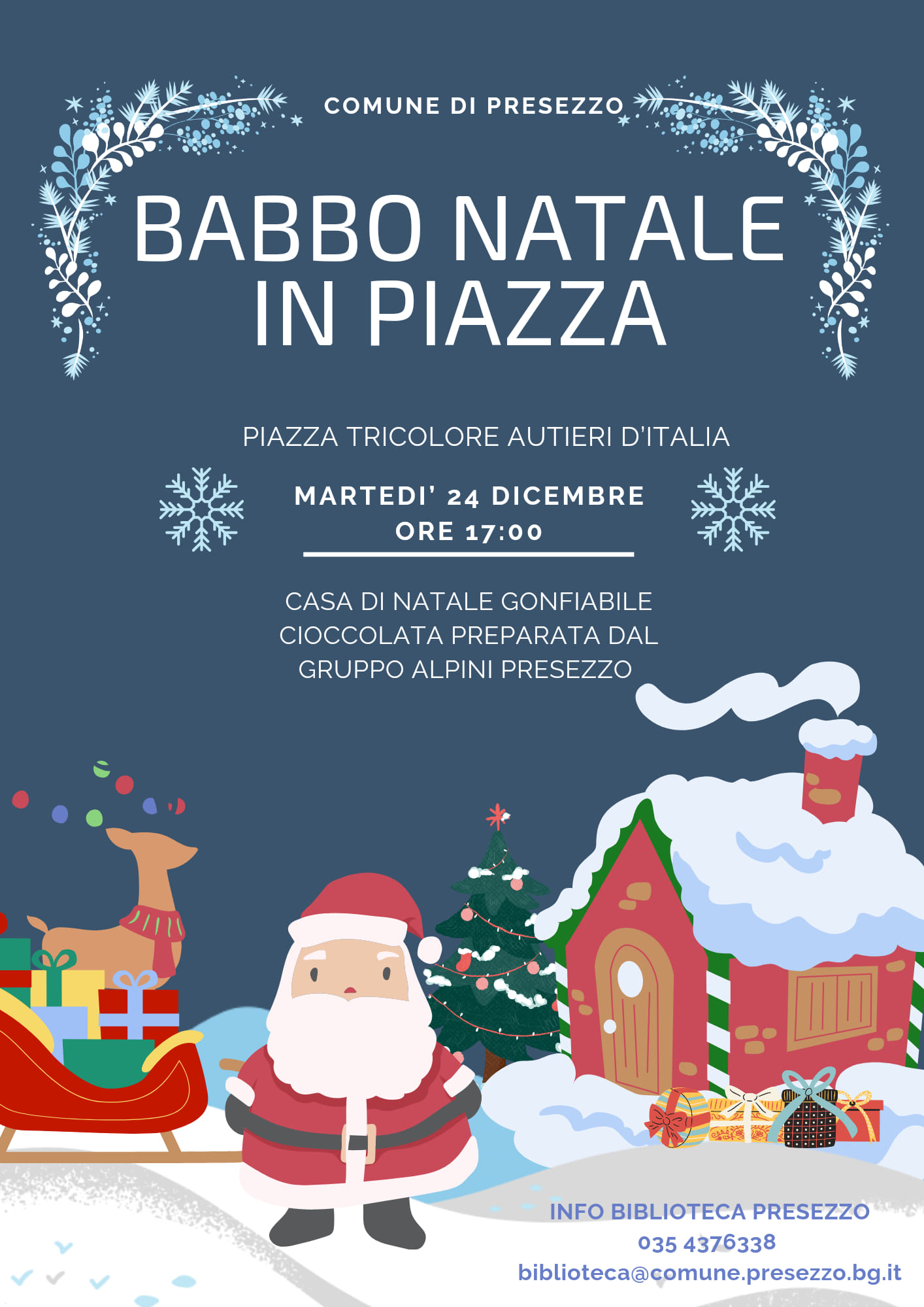 Il Comune di Presezzo organizza un evento speciale per accogliere il Natale in un'atmosfera di festa e condivisione. Martedì 24 dicembre, alle ore 17, in Piazza Tricolore Autieri d'Italia, si terrà l'evento "Babbo Natale in Piazza", un appuntamento che promette di portare gioia a grandi e piccoli.
