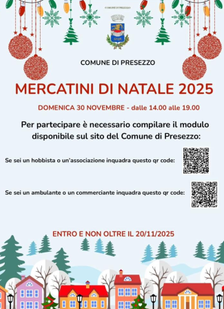 Immergetevi nell'atmosfera natalizia nel cuore di Presezzo. Un pomeriggio tra luci, colori e profumi per festeggiare l'arrivo del Natale.