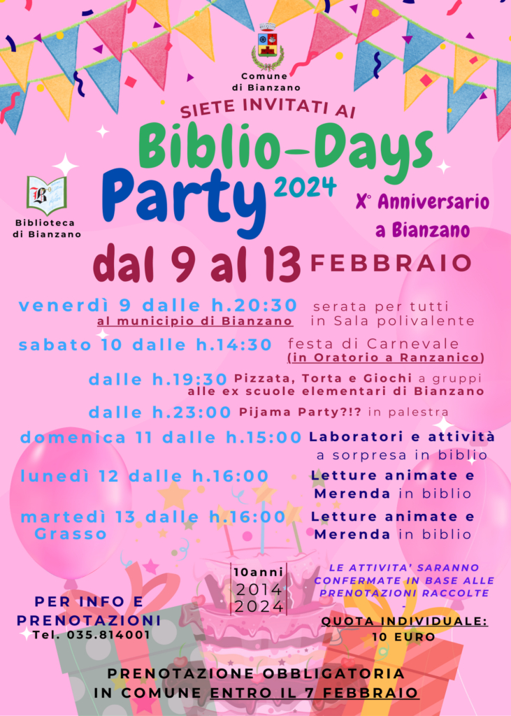 Per il decimo anniversario della biblioteca di Bianzano si festeggia con diversi laboratori e attività.