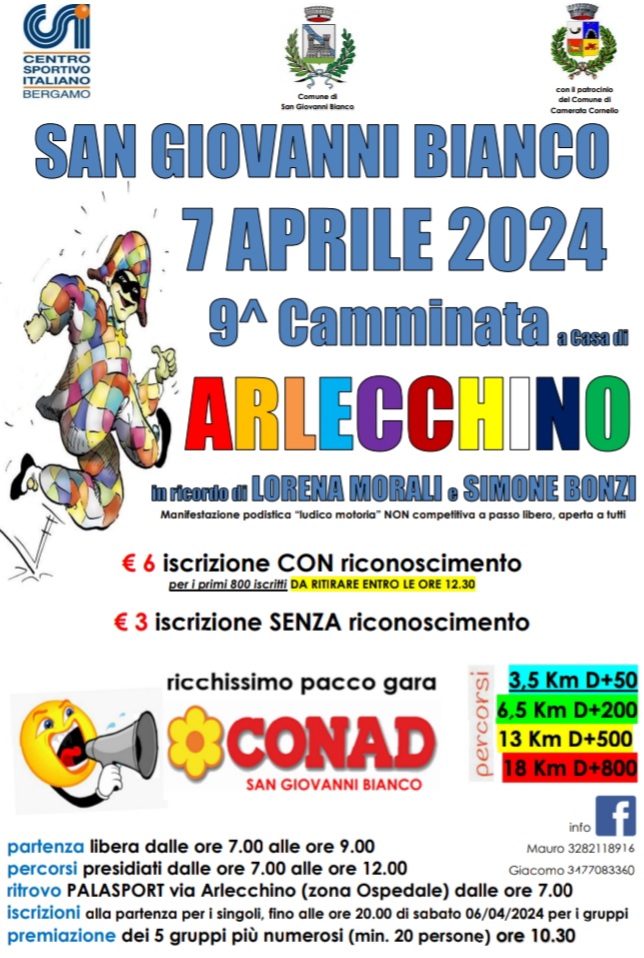 Il ritrovo è presso il Palasport in Via Arlecchino (zona Ospedale) a San Giovanni Bianco alle 7:00.