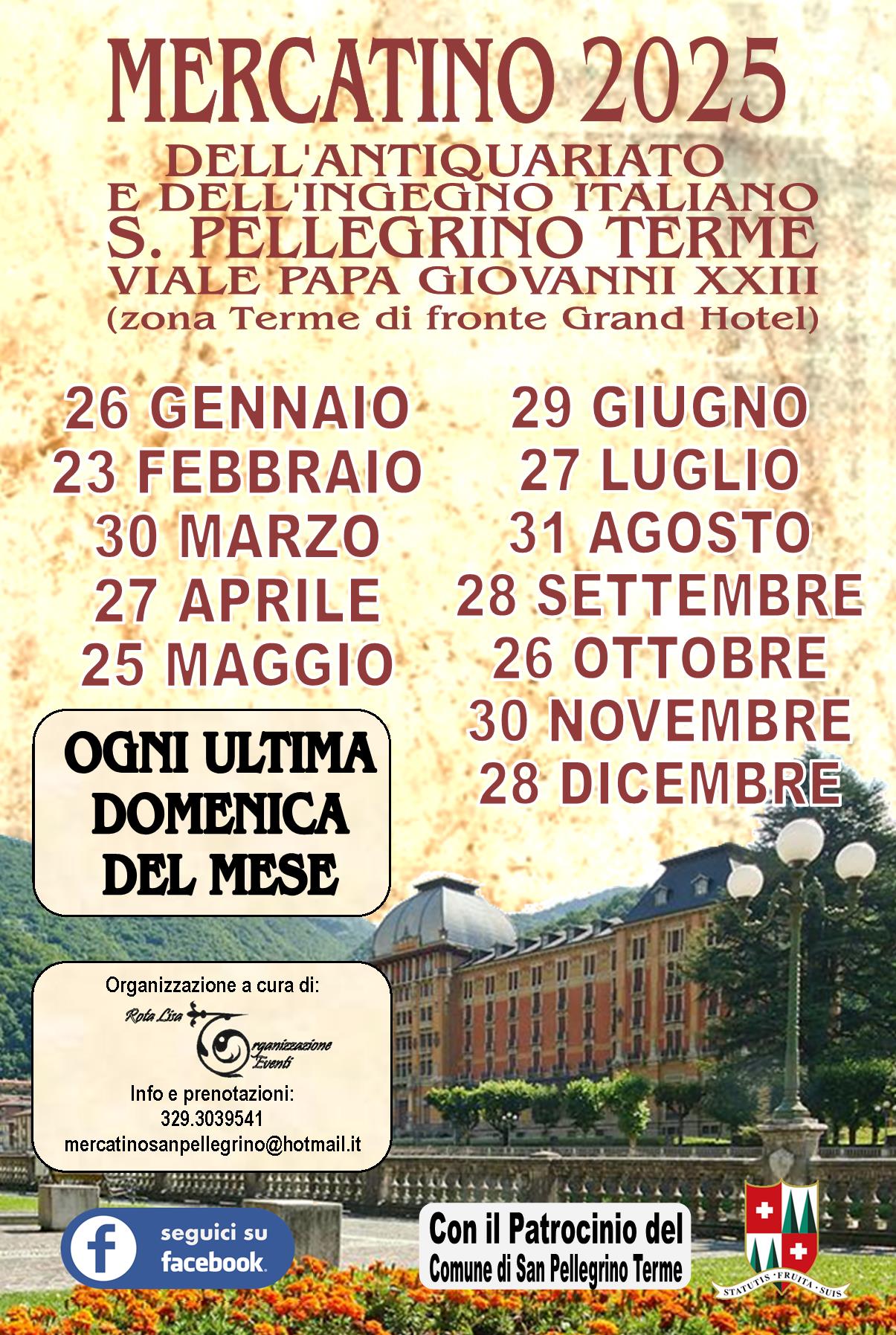 Il mercatino dell'ultima domenica del mese a San Pellegrino Terme! Espositori, oggetti d'arte, prodotti handmade e tantissime chicche vintage.
