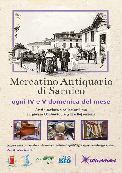 Domenica 29 maggio 2022, si terrà a Sarnico il Mercatino Antiquario, un mercatino dell’antiquariato e del collezionismo con espositori qualificati porterà, nella Piazze Umberto I e Besenzoni, collezioni d’eccellenza con oggetti esclusivi, che porterà i visitatori indietro nei secoli offrendo delle ottime possibilità di accaparrarsi oggetti unici e rari, mobili antichi, dipinti d’epoca e molto altro ancora.