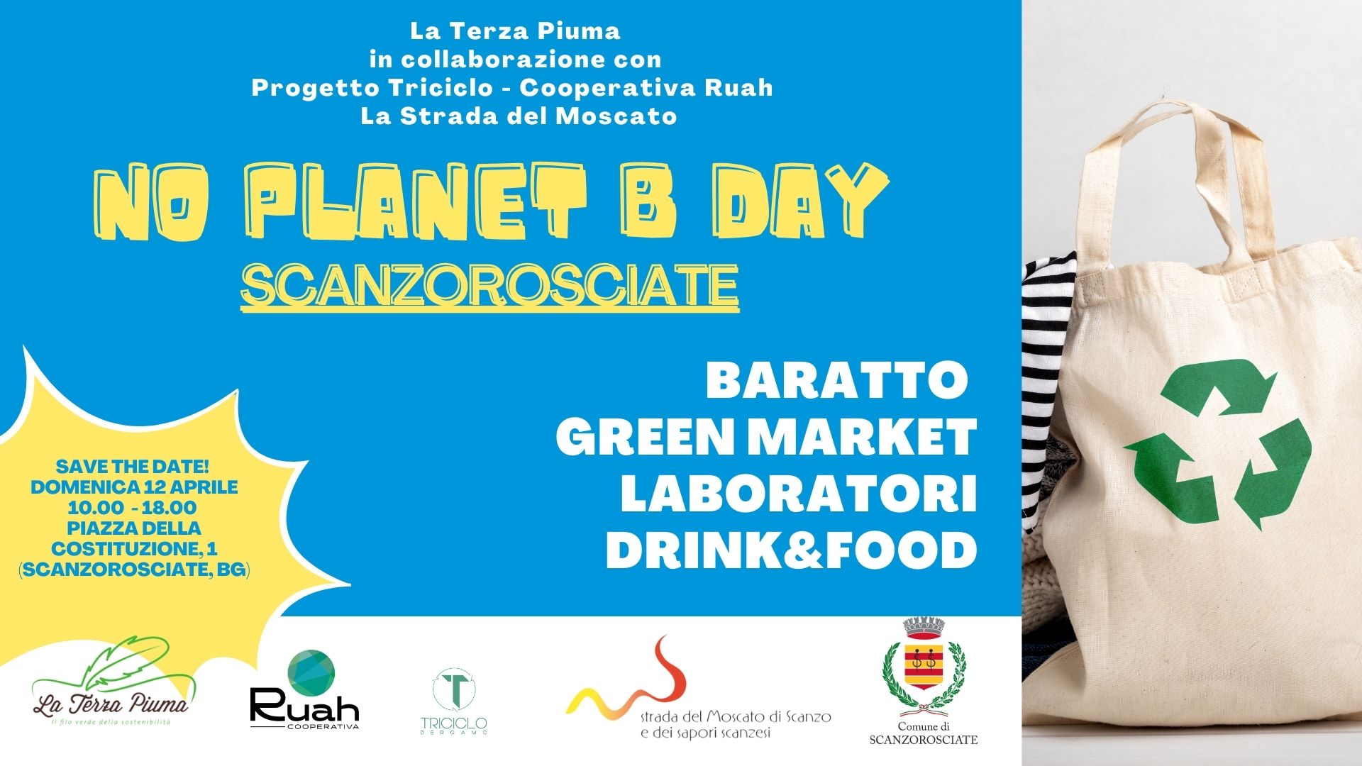 Il 12 aprile a Scanzorosciate, precisamente presso la Piazza della Costituzione 1, sarà organizzato un evento chiamato NO PLANET B DAY.