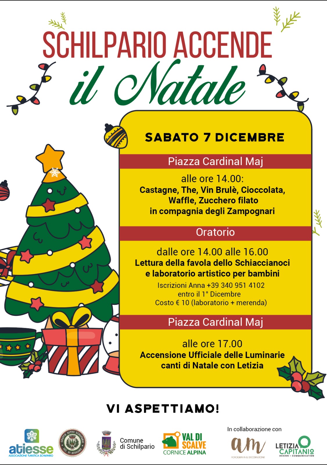 Alle 17 in piazza Cardinal Maj accensione ufficiale delle luminarie di Schilpario e canti di Natale con Letizia.
