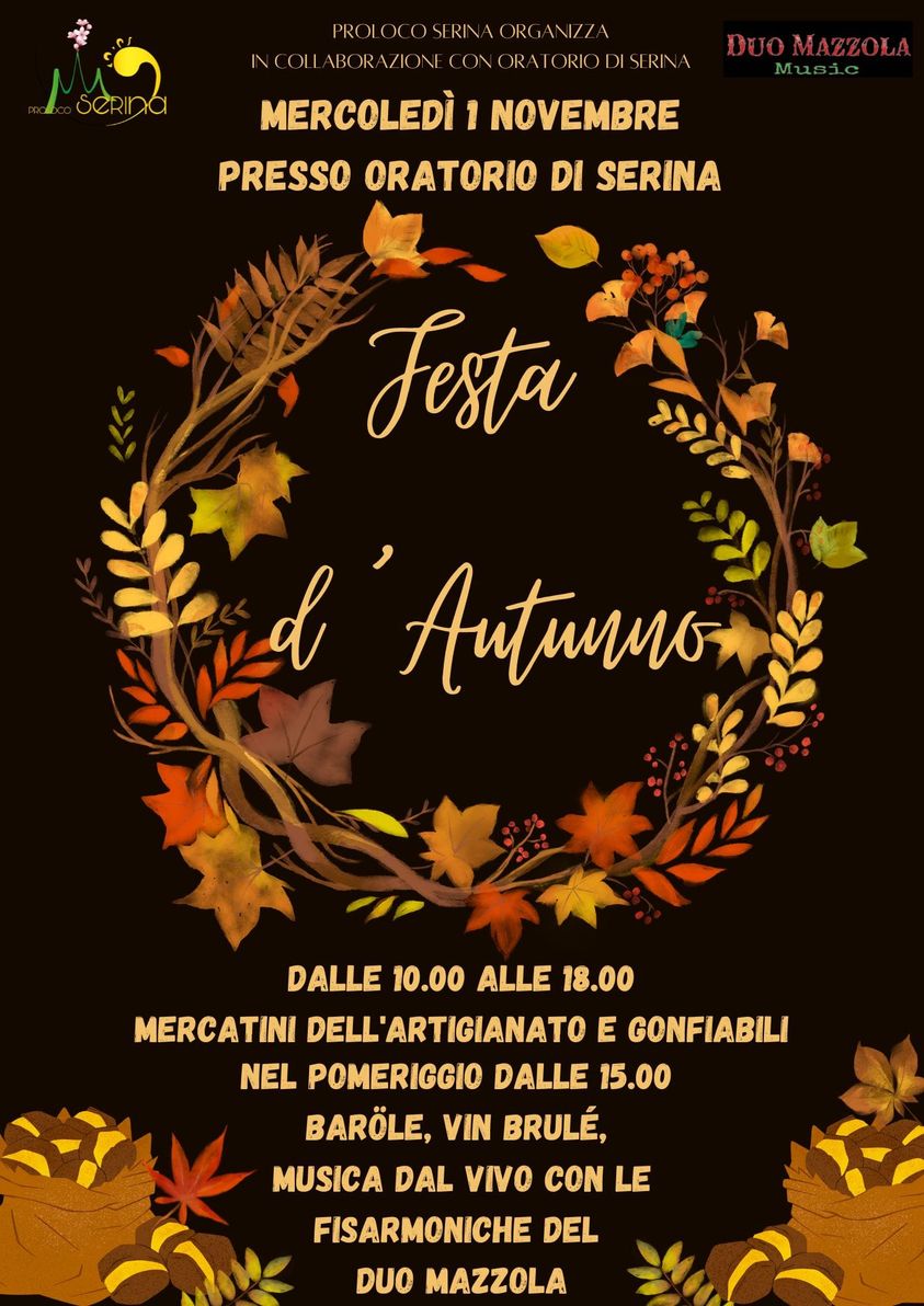 La Proloco di Serina organizza una giornata dedicata alla stagione autunnale per cui si prevede tanto divertimento e intrattenimento con anche barรถle, vin brulรฉ, musica dal vivo con fisarmoniche e tanto altro.