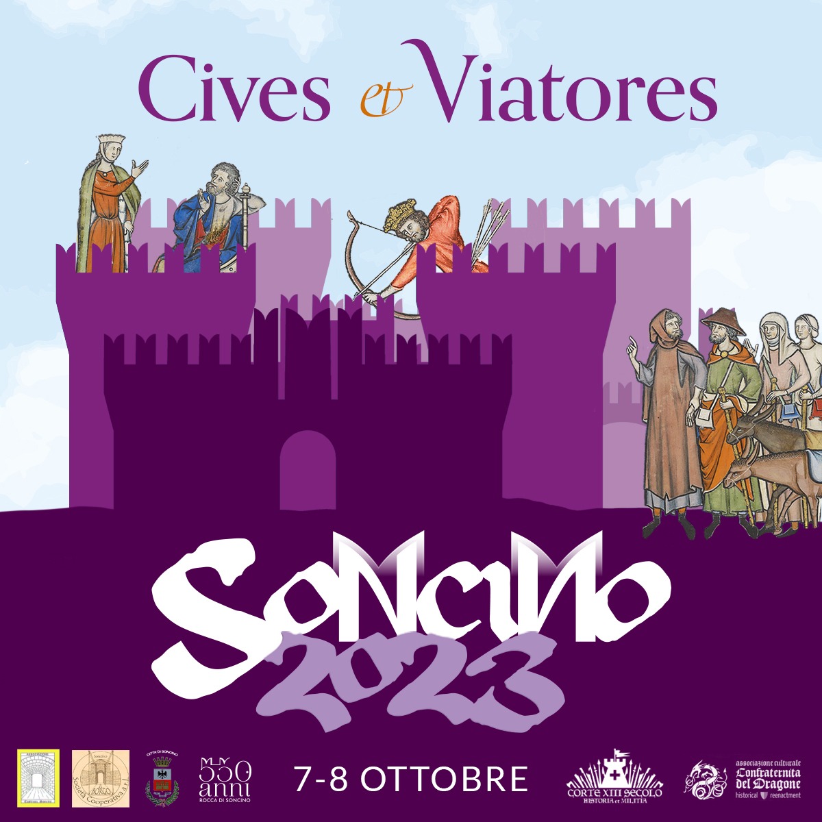 Soncino si trova incastonato tra le province di Cremona, Brescia e Bergamo ancora in territorio cremonese in un paesaggio ricco di vegetazione con numerosi corsi d’acqua e fontanili. Un ambiente spesso selvaggio e misterioso come lo era la Selva Maggiore: la più grande foresta del territorio cremonese dove fino all’Ottocento c’era una cospicua presenza di lupi, ma in cui abbondavano anche gli esseri misteriosi. Il serpente gallo (una sorta di basilisco) oppure le anguane, simili a sirene di acqua dolce. Per non dimenticare la creatura più terrificante: il drago Tarànto che abitava le acque paludose dello scomparso lago Gerundo. Le storie e le leggende non mancano e neppure i personaggi che hanno varcato le porte medievali del borgo: basti pensare alla Monaca di Monza (che visse a Soncino fino all’età di dodici anni), a Leonardo da Vinci, a San Pio V, tutti a lasciare un’impronta significativa di storia e leggenda all’interno del borgo murato. In questo scenario di viaggio in un passato avvincente e suggestivo si inserisce la XX edizione della Rievocazione Storica “Castrum Soncini, Cives et Viatores” organizzata dall’Associazione Castrum Soncini in collaborazione con la Cooperativa Il Borgo. Il gruppo storico, La Confraternita del Dragone insieme a Corte XIII secolo, allestirà gli ambienti della Rocca in maniera suggestiva e filologica per far rivivere l’epoca medioevale. Ci saranno, tra le tante curiosità, brevi scenette di vita quotidiana sia militare sia religiosa.