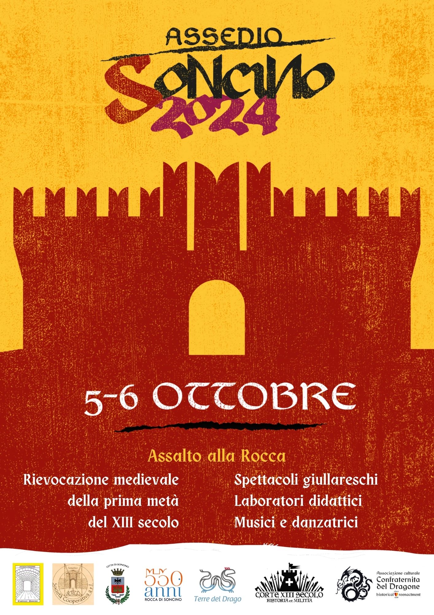 Sabato 5 e domenica 6 ottobre 2024 un centinaio di rievocatori in abiti fedelissimi ricreeranno un vero e proprio assedio del XIII secolo con una guarnigione all’interno della Rocca sforzesca di Soncino e un campo assediante all’esterno. Due giorni in cui tutti i partecipanti verranno trasportati nel Medioevo non solo grazie alle ambientazioni ricostruite negli spazi della manifestazione dalla Confraternita del Dragone e alle battaglie da loro coordinate, ma anche dai numerosi spettacoli e intrattenimenti pensati per coinvolgere visitatori di tutte le età. Si parte sabato 05 ottobre alle 18.00 con l’apertura dei cancelli e un ricco programma in compagnia del Paggio dei Clerici Vagantes e La Cortigiana Zingara che divertiranno il pubblico con i loro intrattenimenti giullareschi e di giocoleria, in attesa della grande battaglia per la conquista del fortilizio che si concluderà con uno spettacolare incendio della Rocca. Domenica 06 ottobre accampamenti e ambientazioni medioevale mostreranno la vita quotidiana delle guarnigioni del XIII secolo. Insieme al Paggio e alla Cortigiana, i visitatori potranno assistere e partecipare alle danze medioevali della compagnia Il Biancofiore, o mettersi alla prova con i laboratori didattici dello Scriptorium e della Tessitura a cura della Coop. Il Borgo. Durante la due giorni l’atmosfera medioevale sarà arricchita dalle note del Syntagma Musicum Consort e riscaldata dal menù realizzato ad hoc da Le Delizie del Borgo. Visite guidate all’interno della Rocca sforzesca saranno realizzate per tutta la durata dell’evento a cura dei volontari dell’Associazione Castrum Soncini.