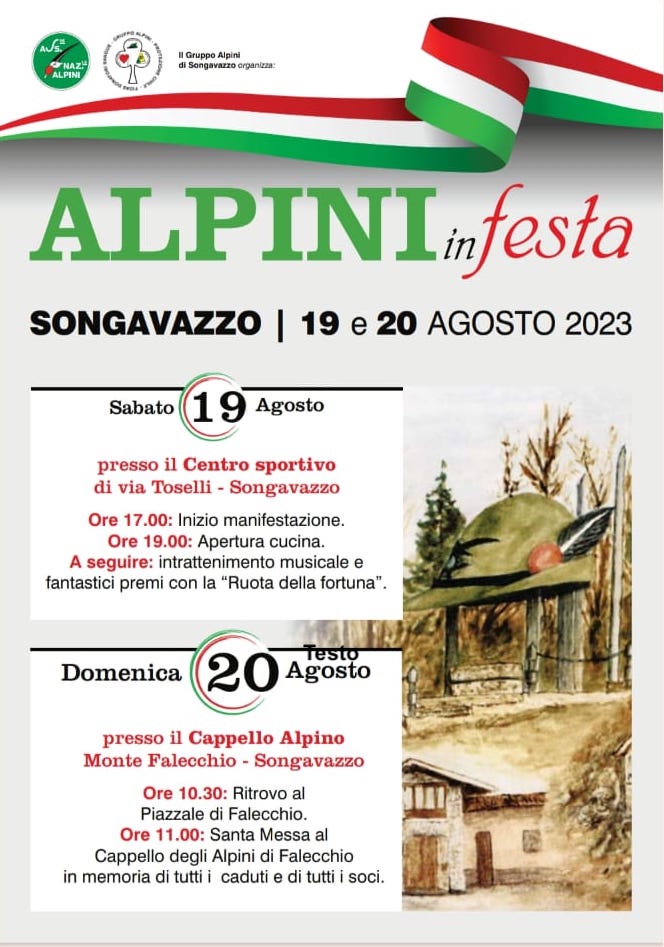 Domenica 20 il ritrovo sarà alle ore 10:30 presso il piazzale di Falecchio e a seguire la S. Messa al Cappello degli Alpini di Falecchio.