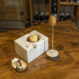 - Antipasto: Polpetta della nonna; Uova nel nido, fonduta taleggio e tartufo; Trota di fiume all’olio, capperi e patata