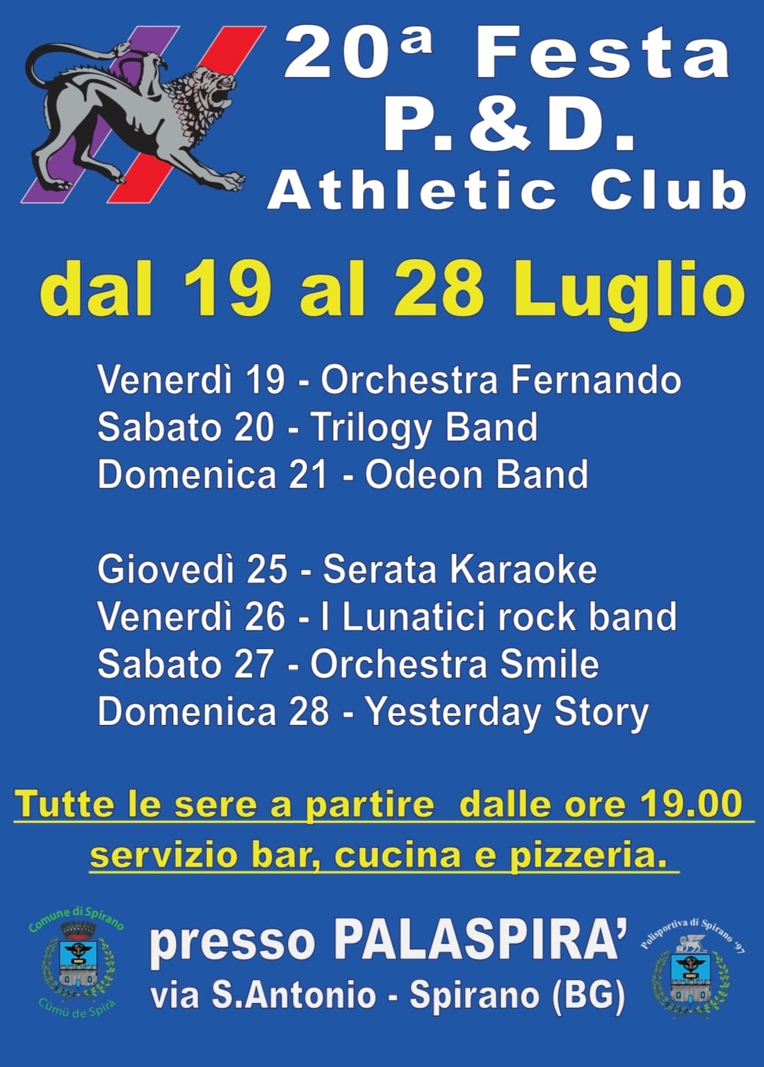 Anche questa estate si festeggia con il P.& D. Athletic Club con la mitica festa estiva giunta ormai alla ventesima edizione.
