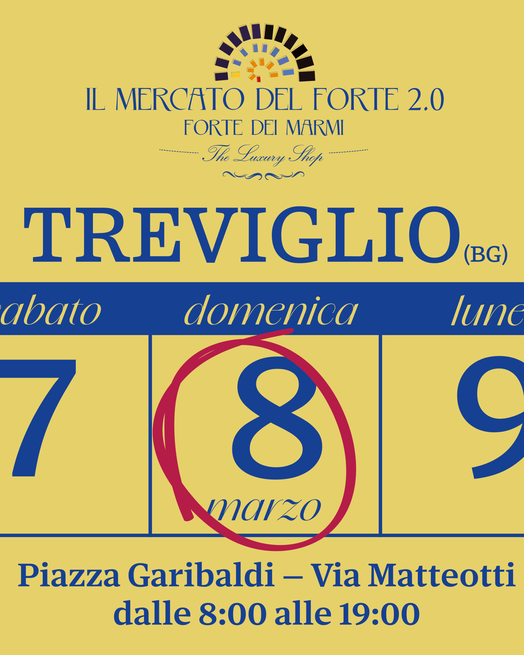 Torna a Treviglio il mercatino itinerante direttamente da Forte dei Marmi. Un mercato a cielo aperto dove trovare abbigliamento, accessori in cashmere e capi firmati per uomo e donna.