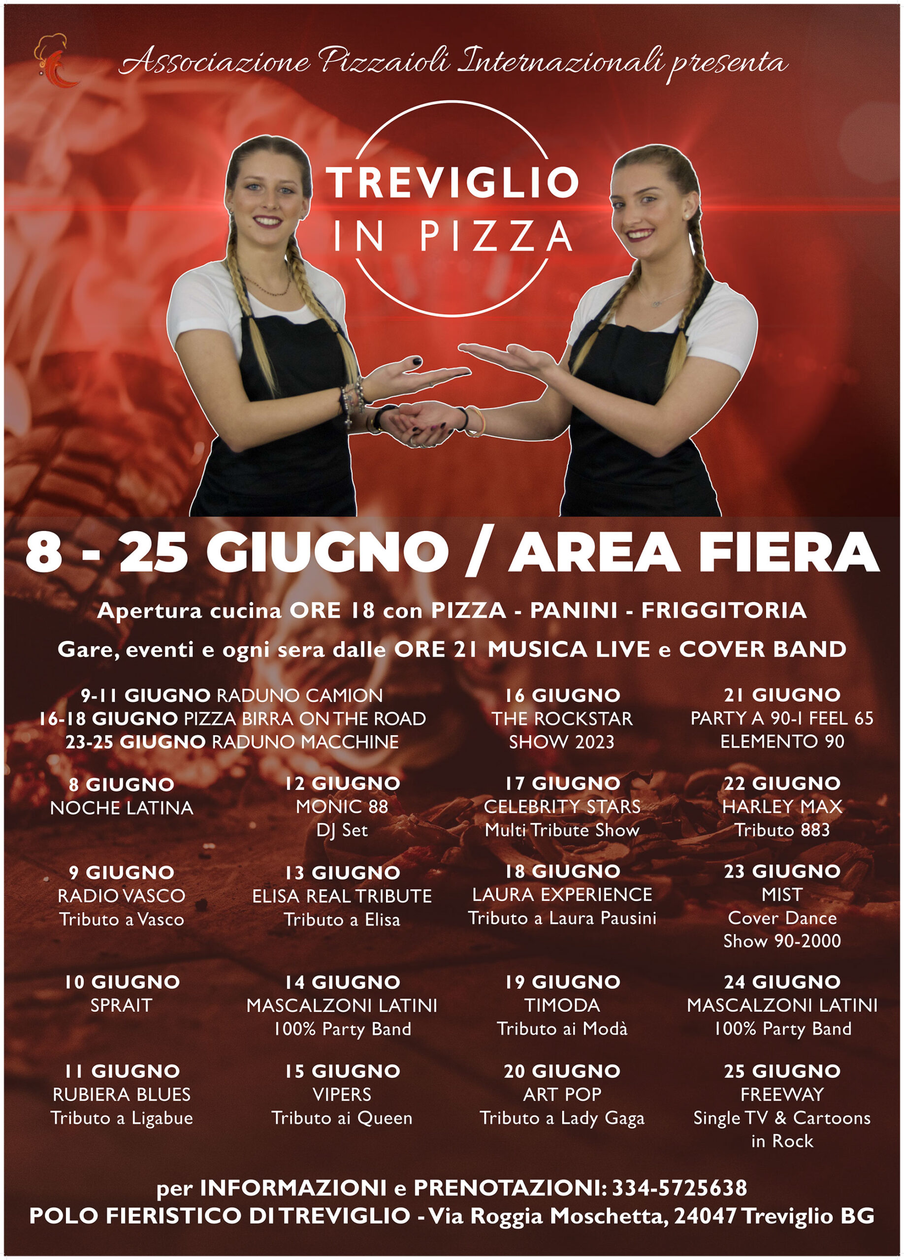 Treviglio in Pizza è una manifestazione a cura di Associazione Pizzaioli Internazionali che ogni sera propone ai partecipanti gare, eventi, musica live e cover band nella cornice della Fiera di Treviglio.