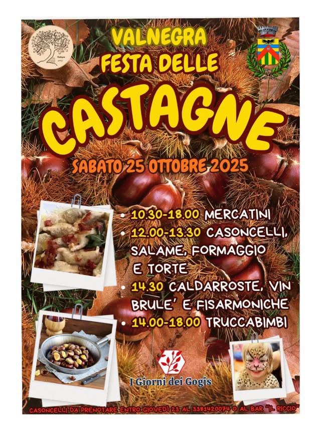 Domenica 22 Ottobre a Valnegra si terrà la Festa delle castagne