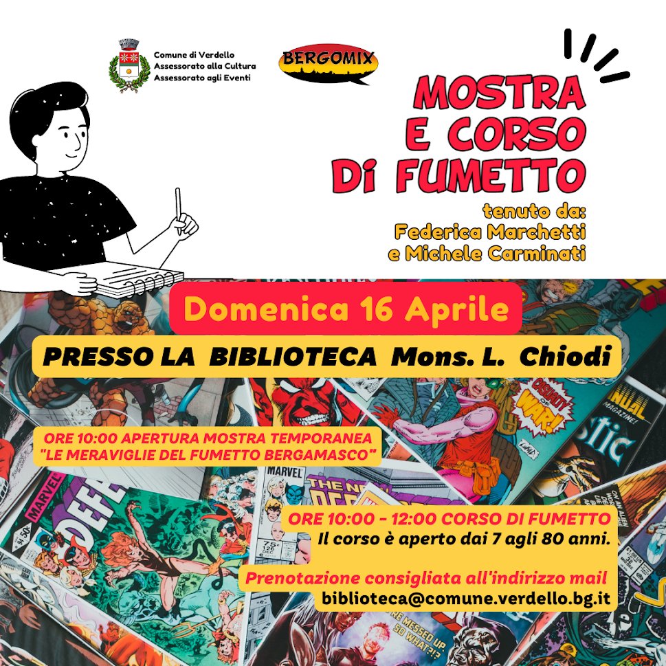 L'Associazione Culturale Bergomix sarร presente in occasione della Sagra del Paese di Verdello (BG) con una serie di appuntamenti dedicati alla Nona Arte.