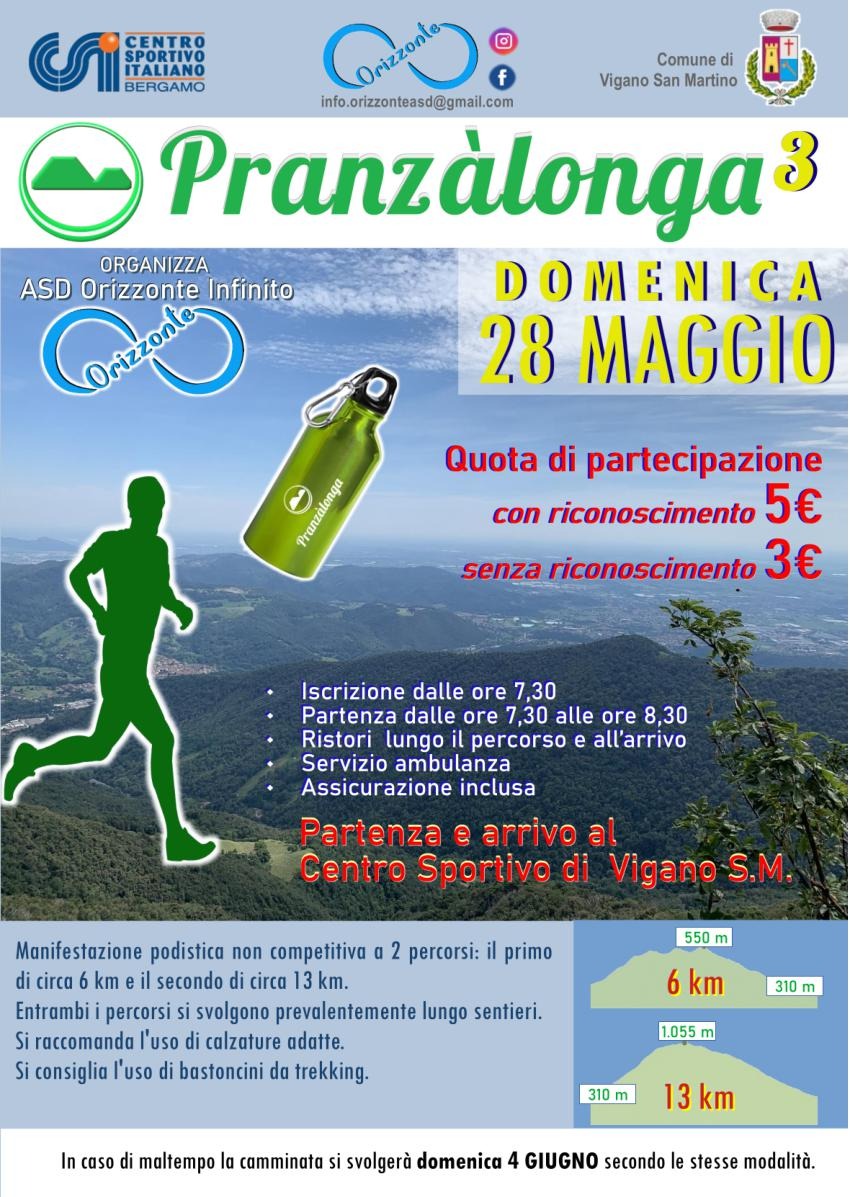 In caso di maltempo la camminata si svolgerà domenica 4 giugno secondo le stesse modalità.