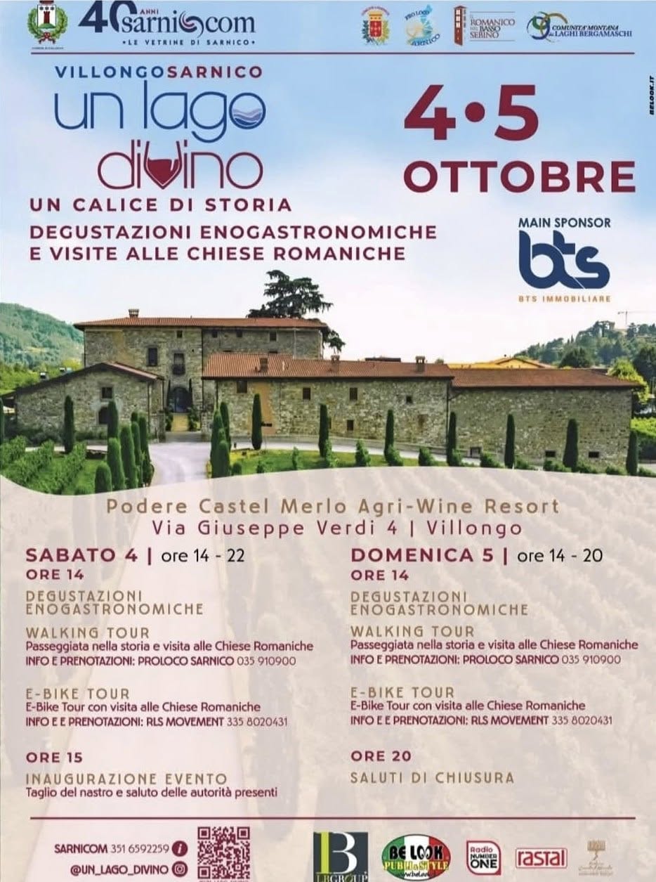 Sabato 4 e domenica 5 ottobre, tra Sarnico e Villongo, avrà luogo la 1a Edizione di “Un Calice di Storia – Degustazioni enogastronomiche e visite alle chiese romaniche”.
