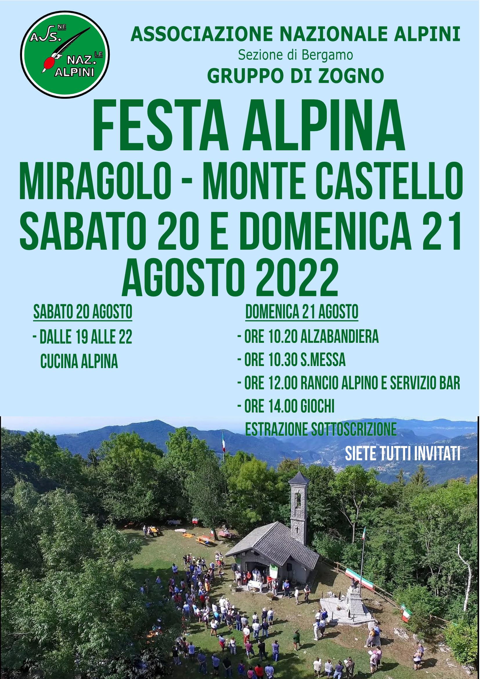 Due giorni di festa con gli Alpini di Zogno. Vi aspetta cucina alpina e la domenica pomeriggio divertentissimi giochi.