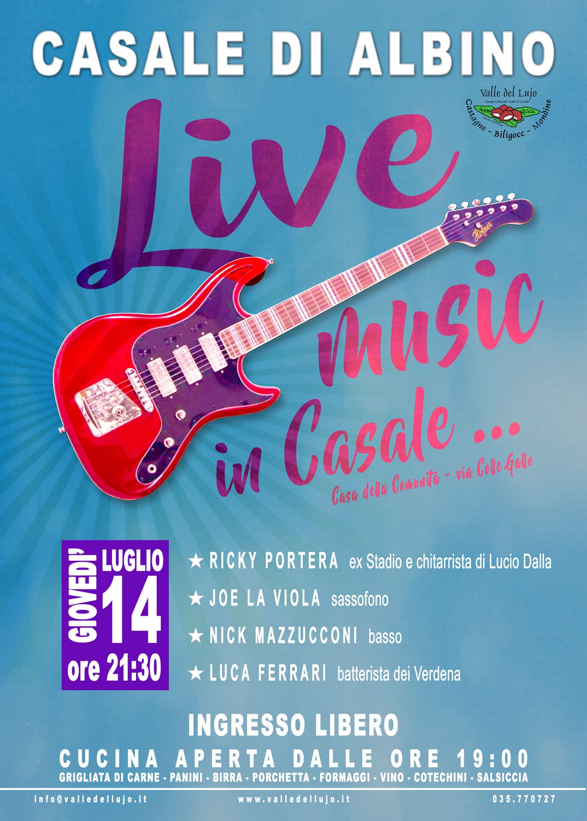 Giovedì 14 luglio alle ore 21.30 presso il Casale di Albino in arrivo una serata a base di musica live, con tanti artisti talentuosi che si susseguiranno.