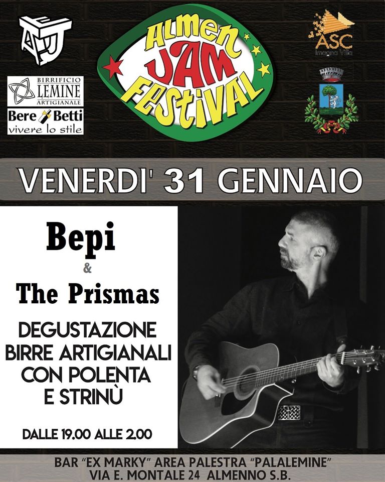 Bepi & The Prismas tornano ad Almenno San Bartolomeo per un concerto "quasi" a sorpresa, in quattro (Re Darayavaush, l'Uomo Sensato e Bobo A4 col Bepi) visto che Al-ber-to! sarà impegnato nelle registrazioni del suo nuovo disco. Sarà un concerto semplice, ma non per questo meno carico.
