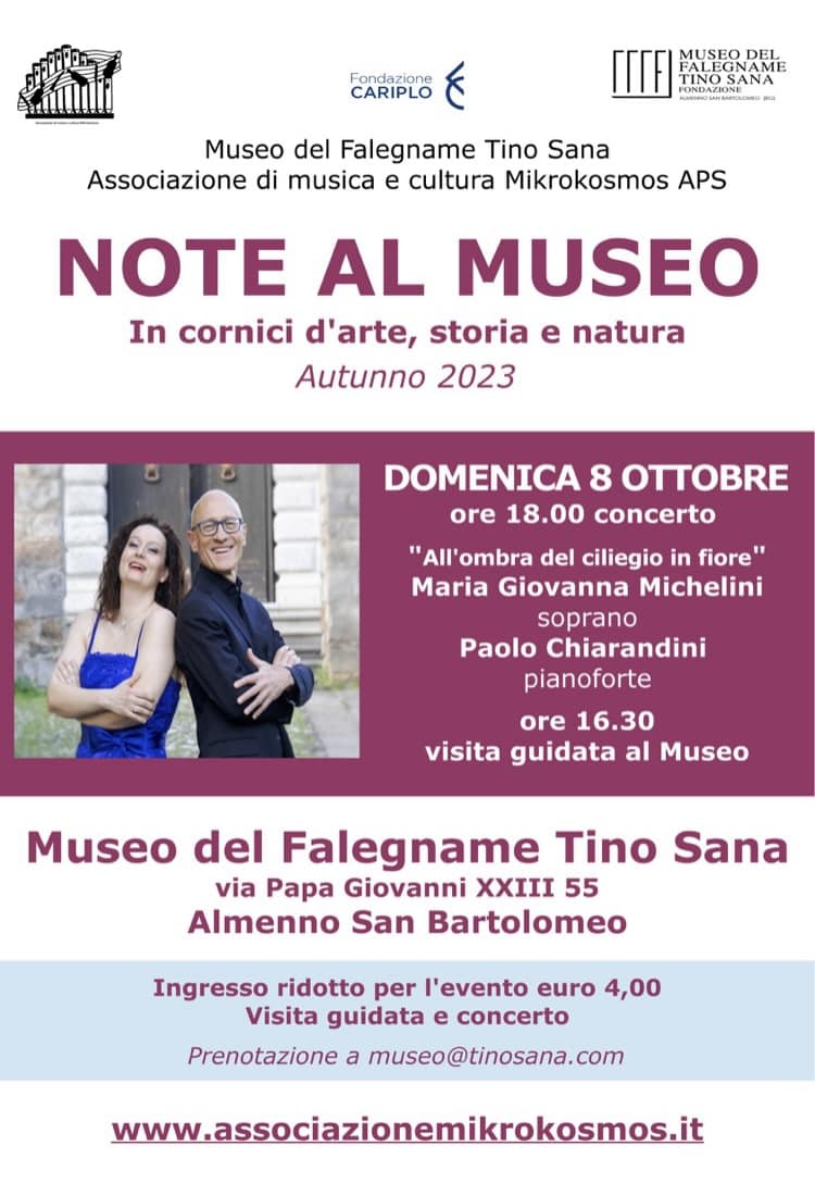Il Museo del Falegname Tino Sana, dopo la visita guidata, ospita "All'ombra del ciliegio in fiore", un'esibizione del soprano Maria Giovanna Michelini e di Paolo Chiarandini al pianoforte.