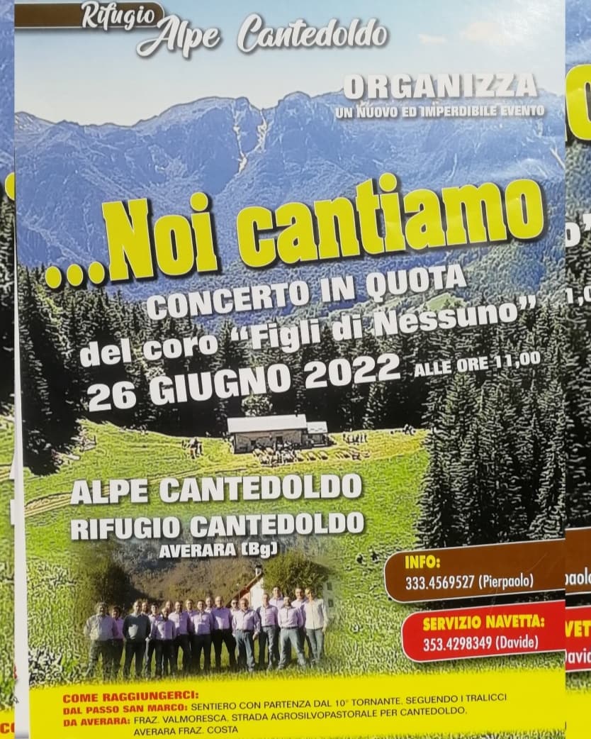 Domenica 26 giugno il coro "Figli di Nessuno" di San Giovanni Bianco si esibirà dal vivo al Rifugio Alpe Cantedoldo.