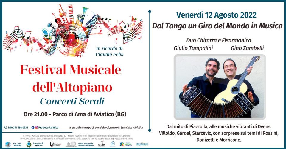 Il Festival Musicale dell’Altopiano è dedicato al ricordo di Claudio Pelis e organizzato da Pro Loco Aviatico, con il patrocinio del Comune di Aviatico e Visit Brembo, in collaborazione con il Conservatorio “G. Donizetti” di Bergamo, l’Unità Pastorale Selvino-Aviatico e la Django Association di Albino
