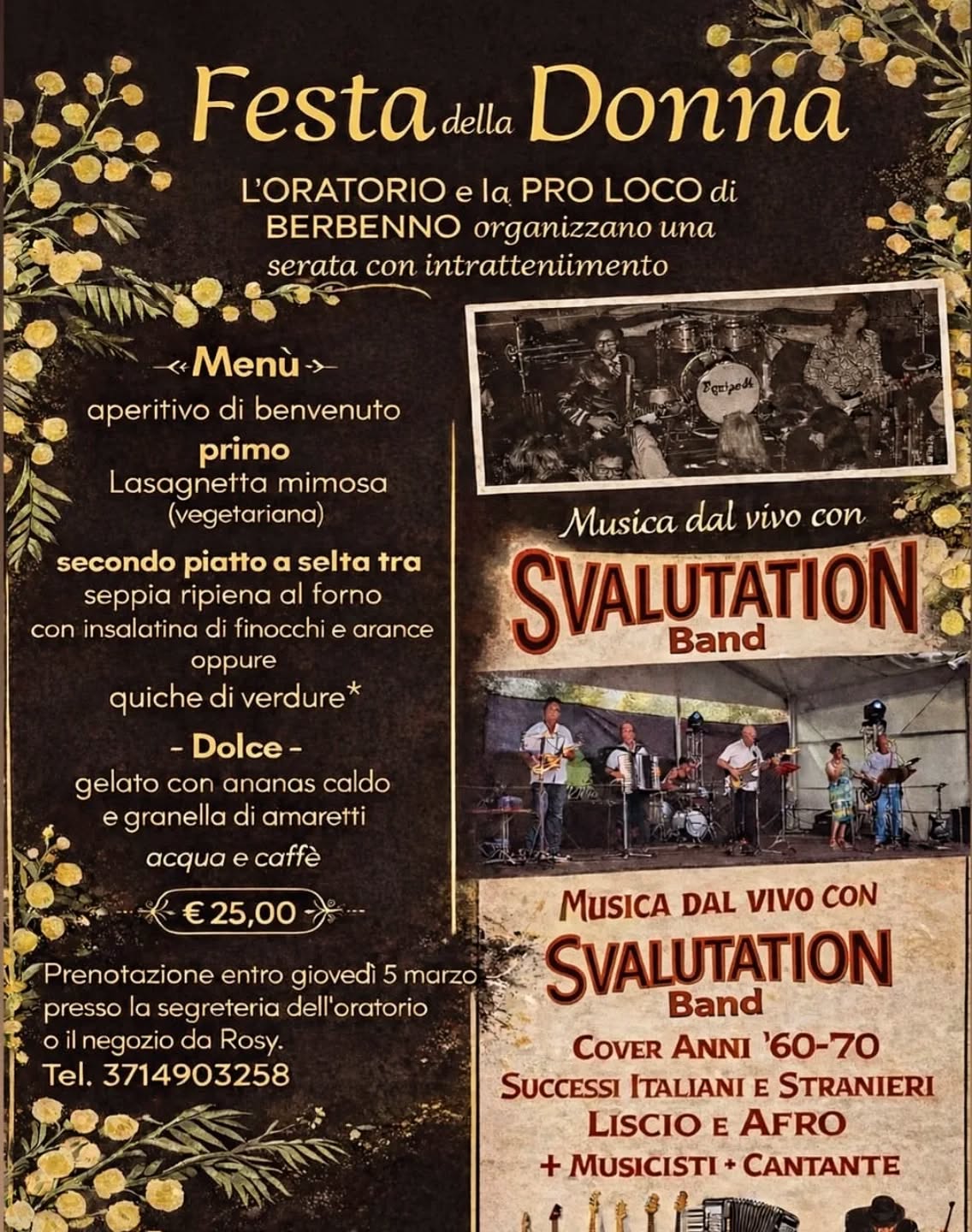 L'Oratorio e la Pro Loco di Berbenno organizzano una serata con intrattenimento, in occasione della Giornata Internazionale della Donna.
