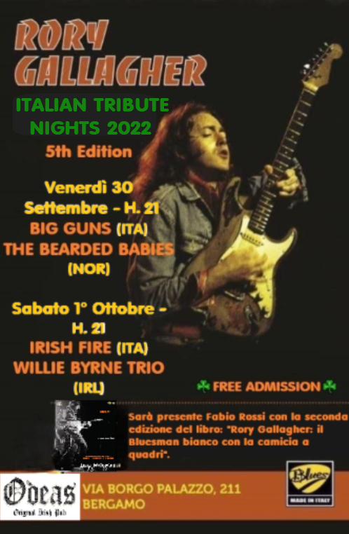 Venerdì 30 Settembre e Sabato 1 Ottobre, presso l’O’Deas Irish Pub di Bergamo si terrà la quinta edizione di Italian Rory Gallagher Tribute Nights