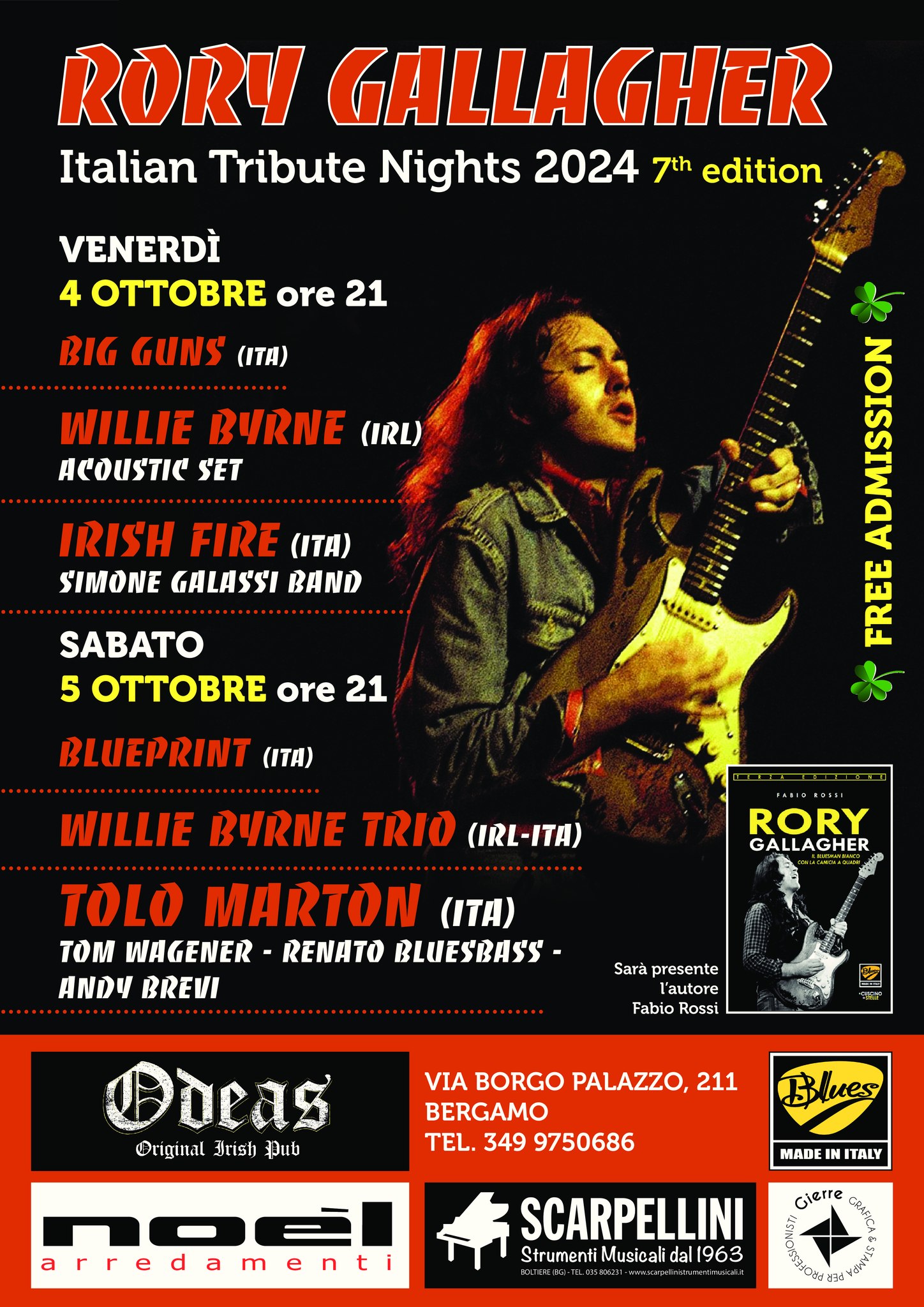 La musica del chitarrista Rory Gallagher oggi vive nei cuori dei suoi fedelissimi fan sparsi in tutto il mondo. Concerti celebrativi e Festival si svolgono ogni anno in Irlanda, Gran Bretagna, Olanda, Germania, Grecia, Austria, Giappone e ora anche in Italia nella nostra Bergamo! Non perdetevi l'omaggio a questo ragazzo irlandese con la sua mitica Sunburst Fender Stratocaster!