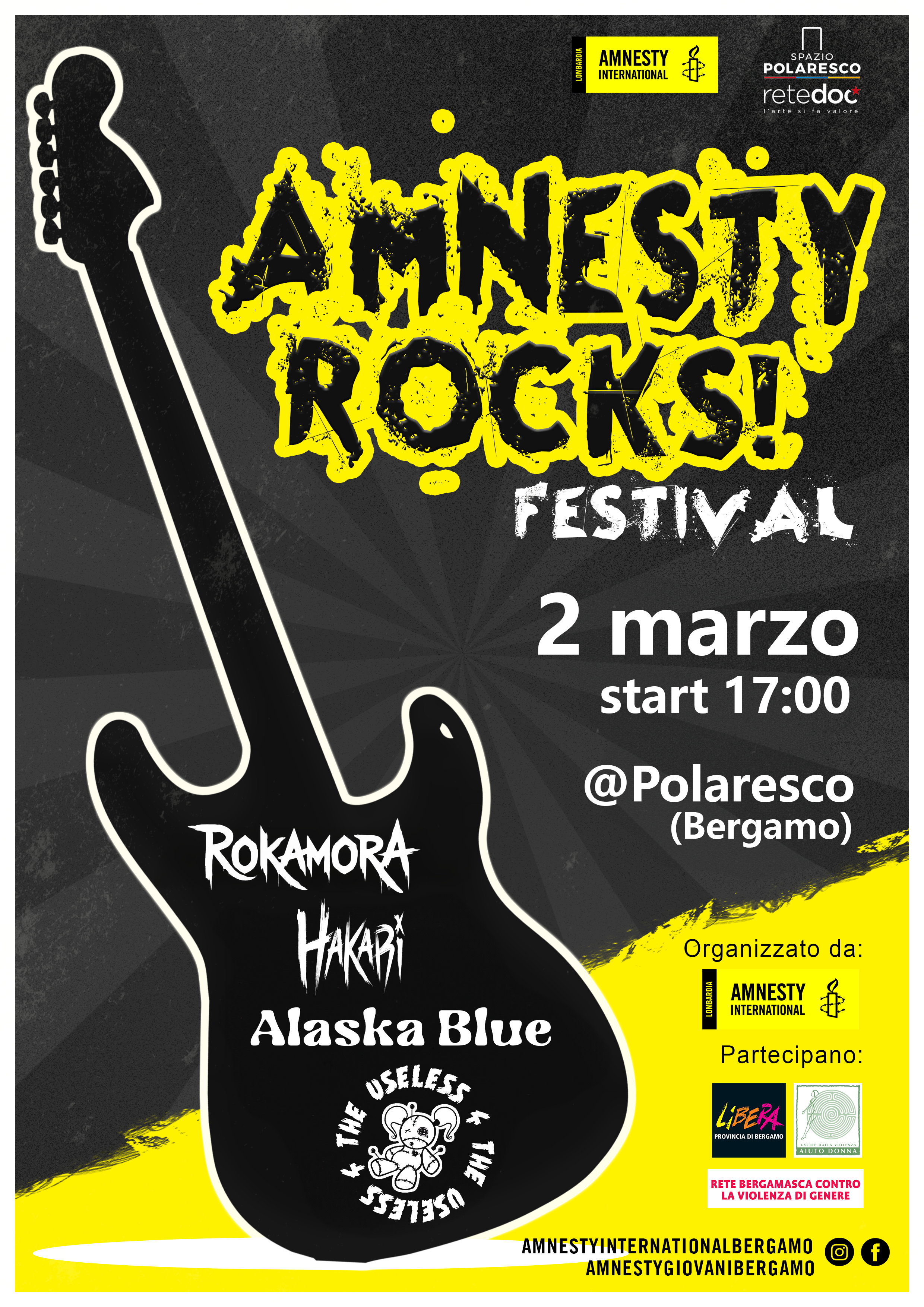 Amnesty International e Spazio Polaresco vi invitano ad "Amnesty Rocks!", una serata di musica rock dal vivo e difesa dei diritti umani. Si parlerà dei diritti delle donne, della loro tutela e della lotta contro la violenza di genere.